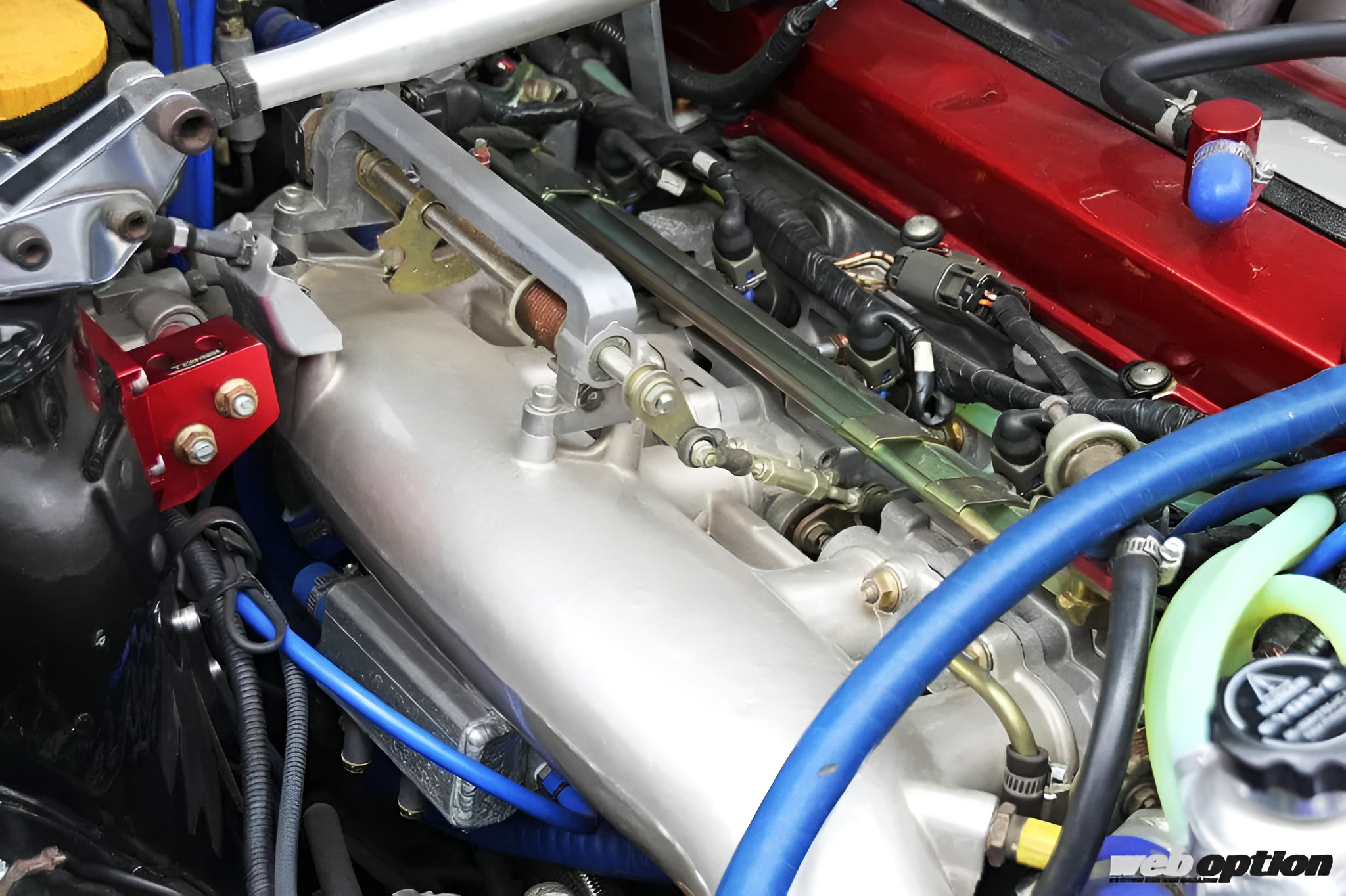 さらに、オーナーが求める「街乗りでの気持ち良さ」を実現するため、インテーク側に260度の東名パワード製カムを、エキゾースト側に248度のレイマックス製カムをそれぞれ組み合わせているのもポイントだ。これにより、3000rpmでピークブーストに到達し、そのまま7000rpmまで力強い加速が持続するワイドなパワー特性を獲得。最高出力は550psだ。