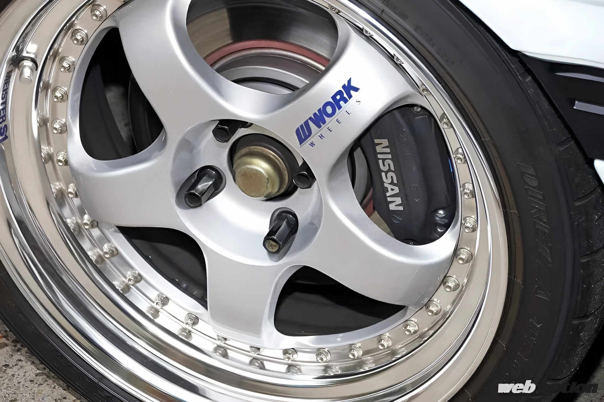 足回りはオーリンズ車高調を軸にセットアップ。ホイールはワークのマイスターS1で、タイヤにはディレッツァZII(F225/45-17 R245/40-17)を組み合わせる。