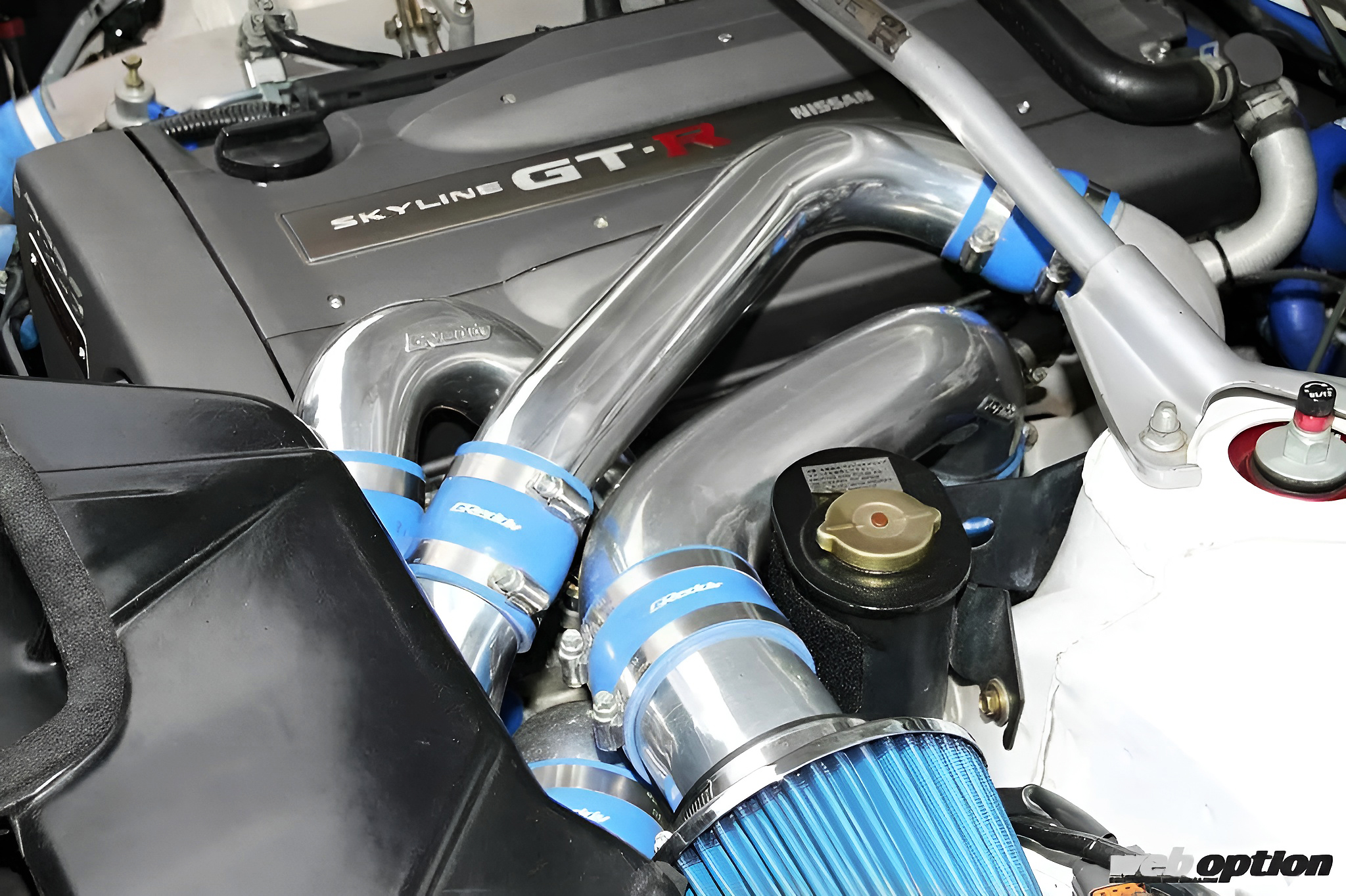 心臓部は、HKSの鍛造ピストン&クランクに東名パワードのH断面コンロッドを組み合せて2.8Lまで排気量を拡大。ヘッドも燃焼室加工やポート研磨などくまなく手を入れ、そこにアクチュエーター式のT517Zタービンをツインでセットしている。