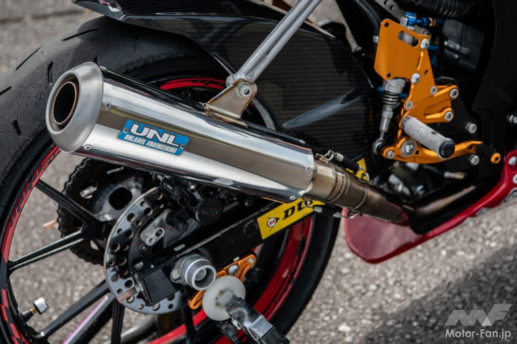 使用するマフラーはアンレーベル製のレーシングフルエキゾースト、スタンダードレーシングサイレンサーとなる。