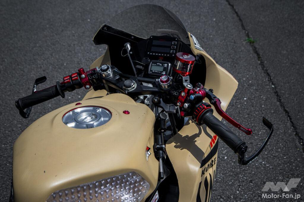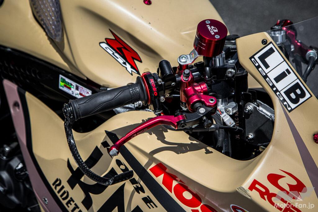 ハンドルグリップやラジアルポンプ式マスターシリンダー、左右のレバーはRCB製を使用。ハイスロットルはKOSO製とし、カーボン製のレバーガードも盛り込まれる。