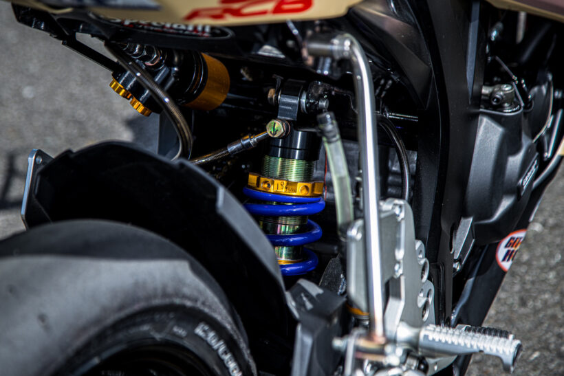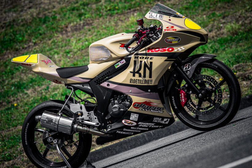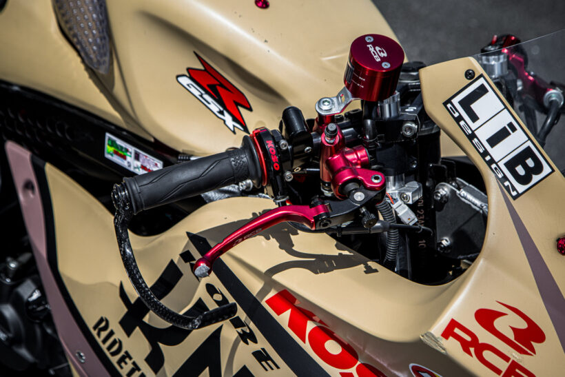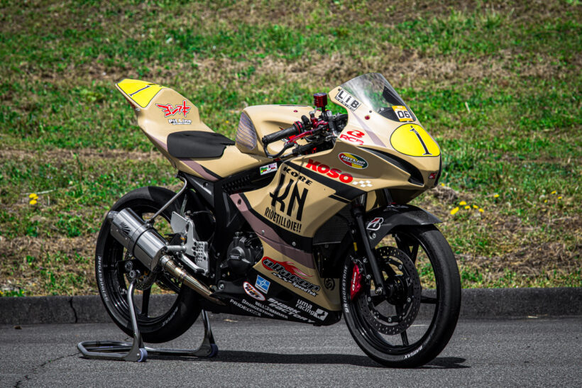 バイクカスタム ミニバイクレースのS80クラス用149ccのGSX-R125で最高速に挑む! 【モトチャンプ最高速チャレンジ2026】【写真・6枚目】 ライダーはモトチャンプ杯全国大会での優勝経験もあり、今もレースで上位に食い込むベテラン、大木選手が担当。 フロントカウル、サイドカウル、アンダーカウル、テールカウルはすべてEIGHT製を使用する。 美しいエクステリアのペイントはLIBデザインによるオールペンとなる。 カーボン柄がレーシーなフロントフェンダーはMOS製を使用。 この画像の記事を読む