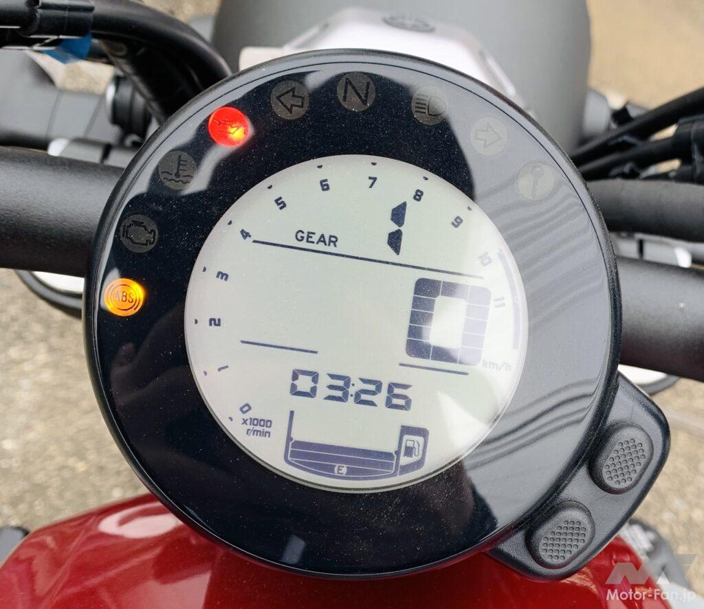 メーターもサークル形状になっていて、レトロさと先進性がミックスされたデザイン。ネガポジ反転LCDなので、昼夜問わず視認性が高いのも魅力的でした。