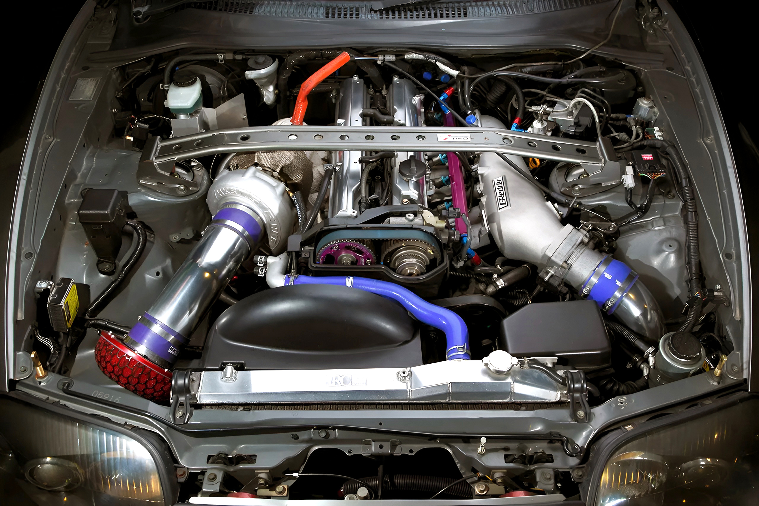 吸気系はインフィニティ90φスロットルとトラストサージタンクで効率アップ。また、2基のサード265m/Lポンプと1000ccインジェクターで燃料系も大容量化されている。
