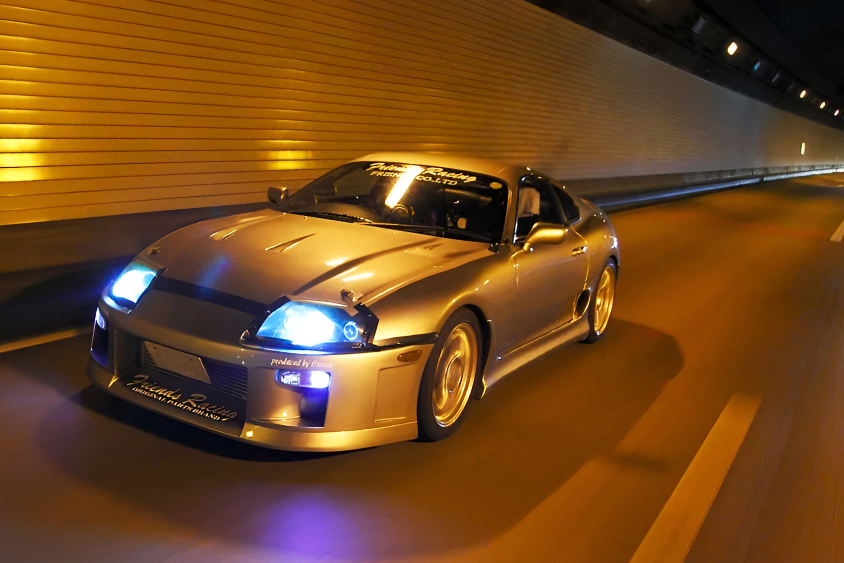 純血の最高速仕様として進化を遂げたJZA80スープラの登場だ。マシンメイクを担当するのは、OPTION誌の最高速企画(小野ビット隊が行く!)で金字塔(JZX110:348.9km/h)を打ち立てた“フレンズ”だ。