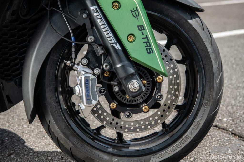 フロントのフローティングディスクとキャリパーはFRANDO製をチョイス。