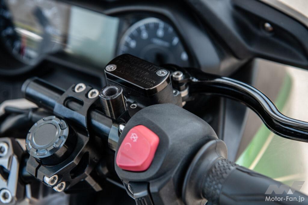 フロント側のマスターシリンダーはFRANDO製のラジアルポンプ式を装備。ハンドルはセパレート式となっている。