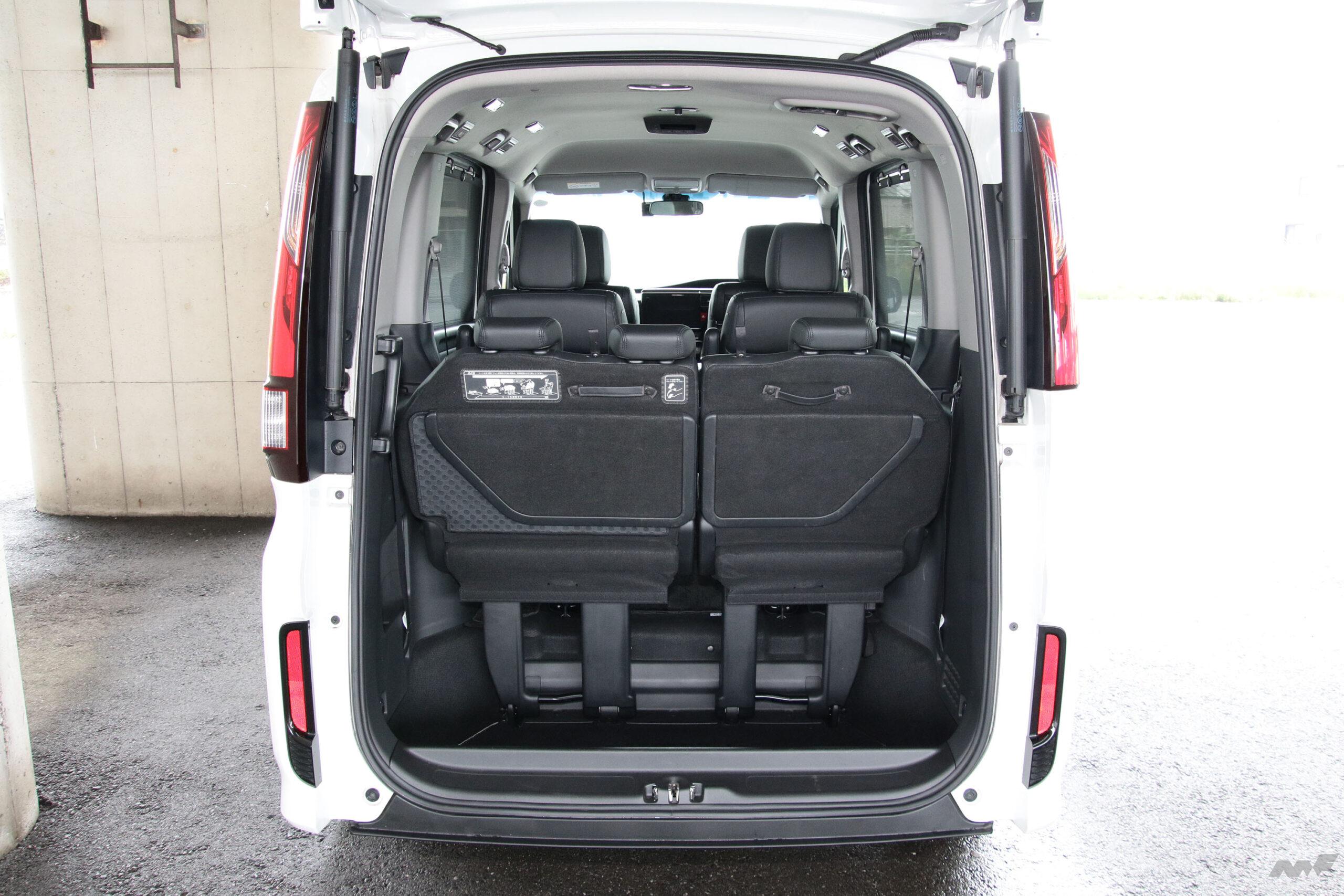 一方、3列目使用時でも42cmの奥行きと23cmの深さ(筆者実測)があるため、荷室の使い勝手は良好。しかも3列目は格納が2ステップ、展開も3ステップで楽にアレンジでき、さらに2列目を最前部までスライドさせれば同157cmのフラットな荷室を得ることができる。