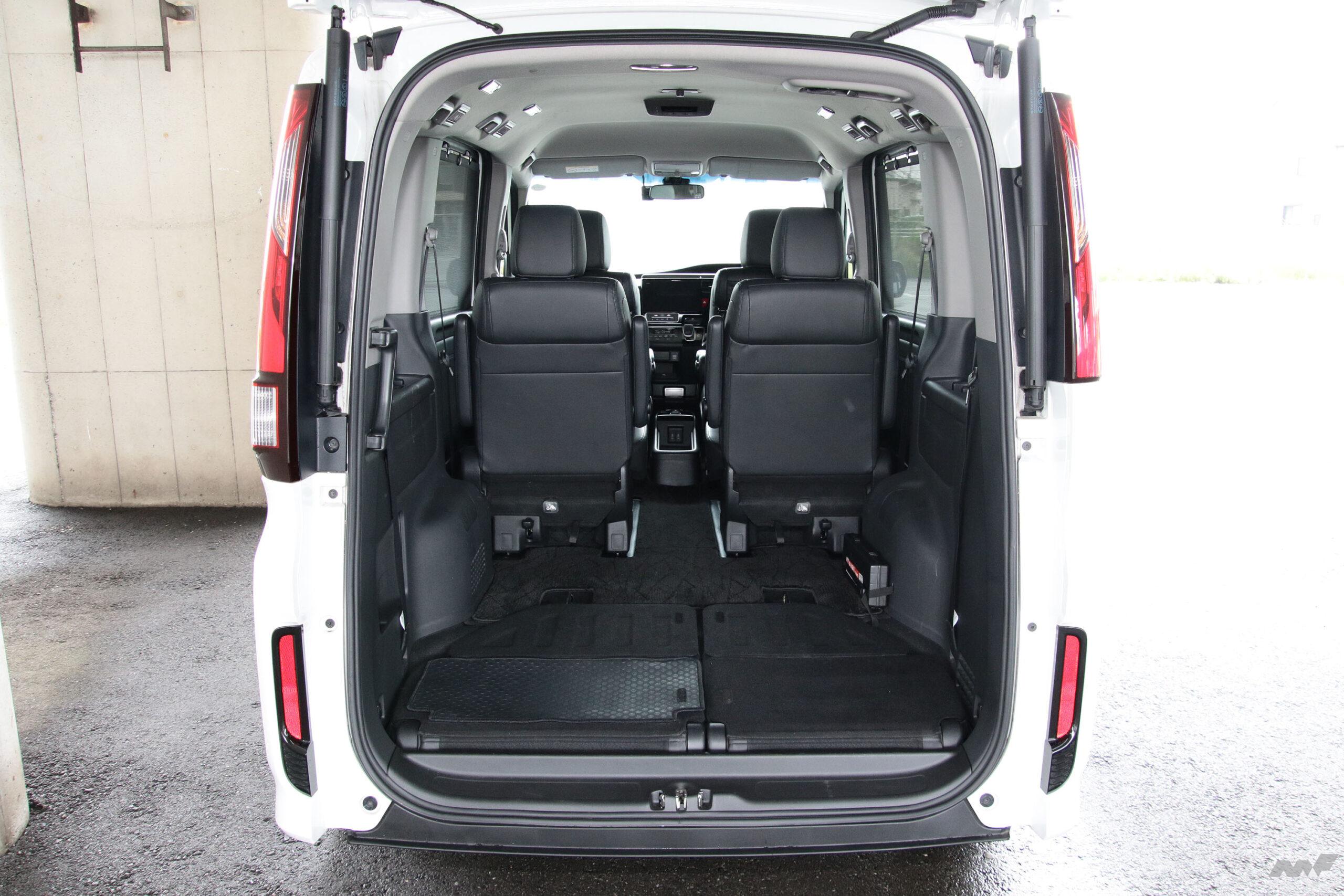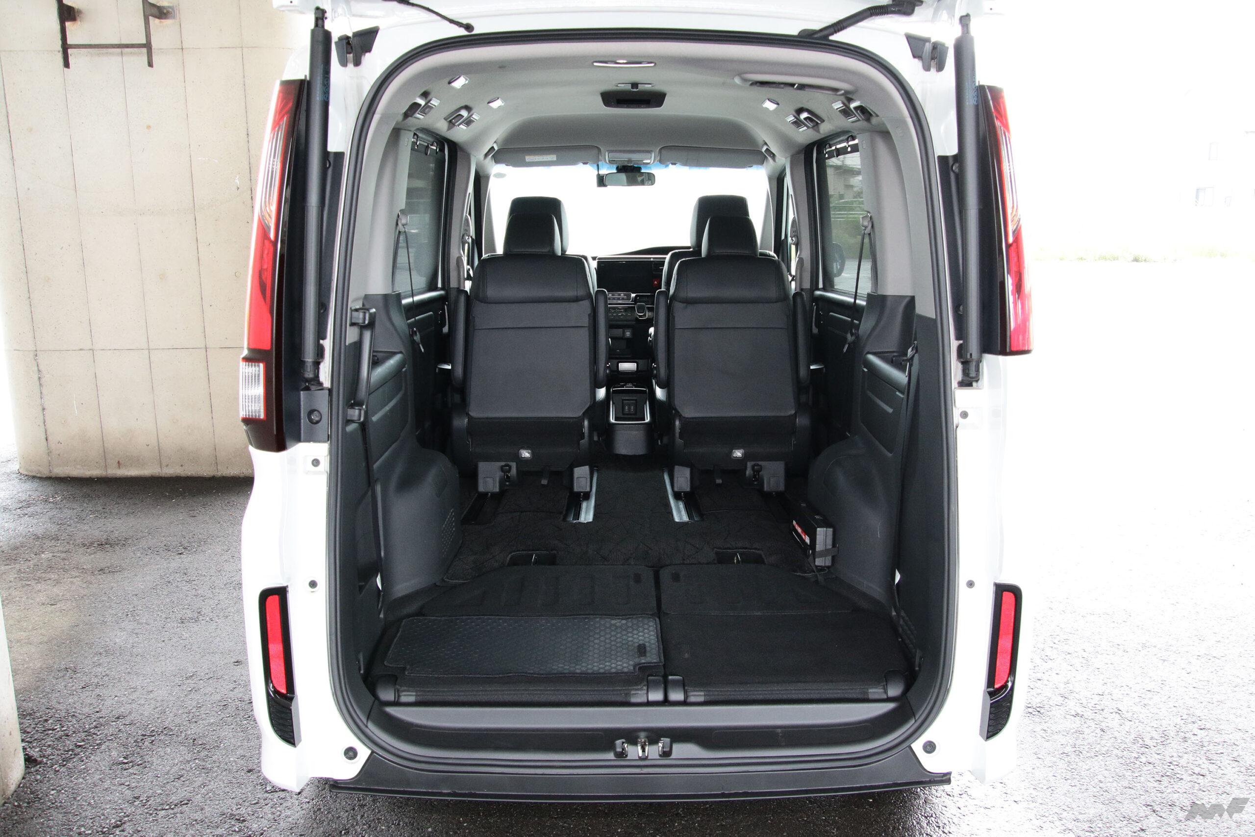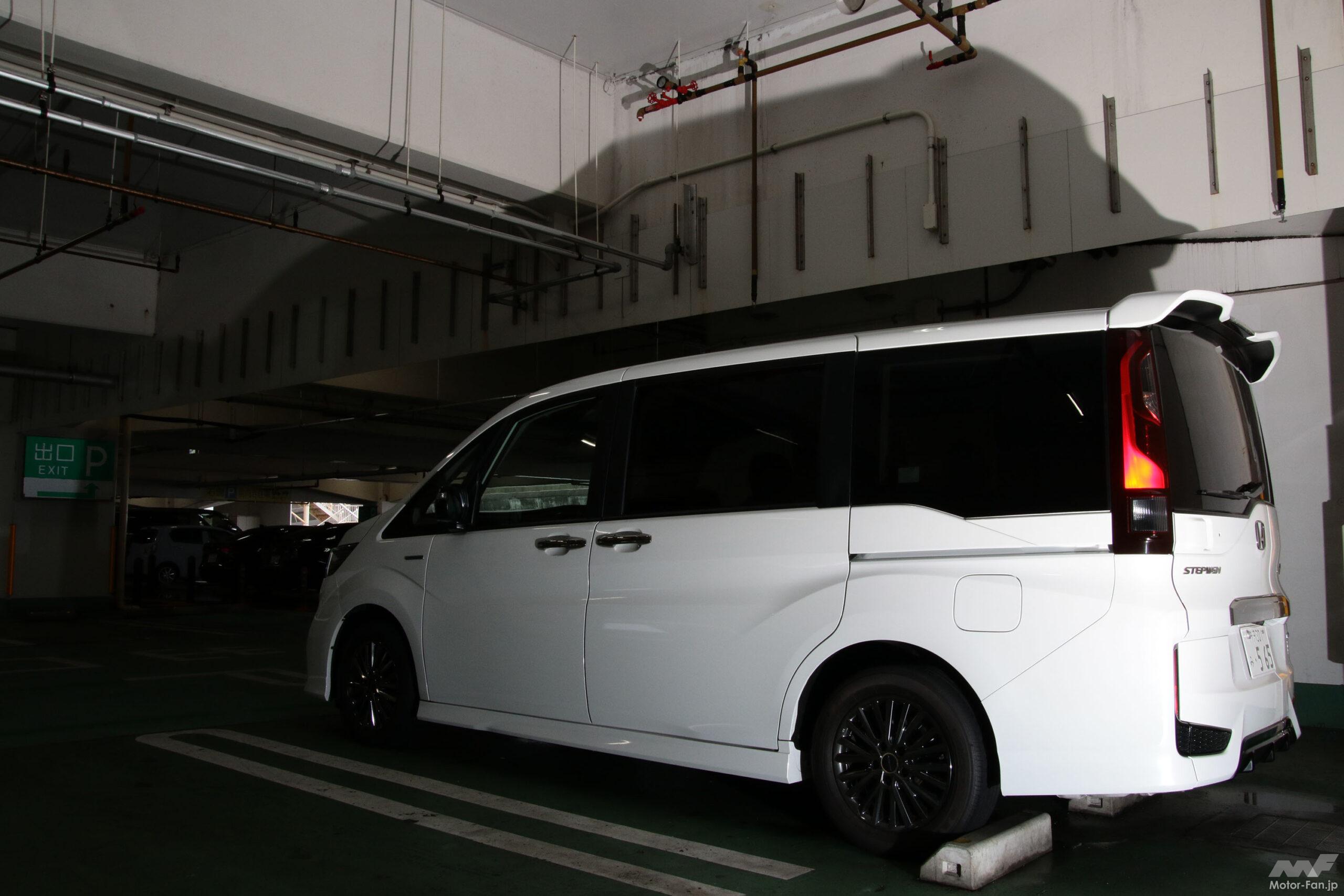 五代目ステップワゴンの場合、縦に開いた際の開口部下端がバンパー下端と同じため、その後方突出量は124cm(筆者実測)に達する。またその際の取っ手の地上高は180cm(同)あり、しかも電動開閉機構がオプションでも用意されないため、小柄な女性が開閉するのは至難の業だ。