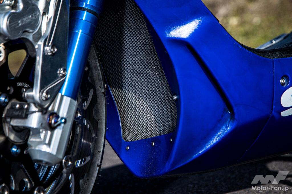 水冷エンジンのため、ラジエターはランナー180用を活用してカウル内に埋め込まれる。細部まで美しい仕上がりがポイント。