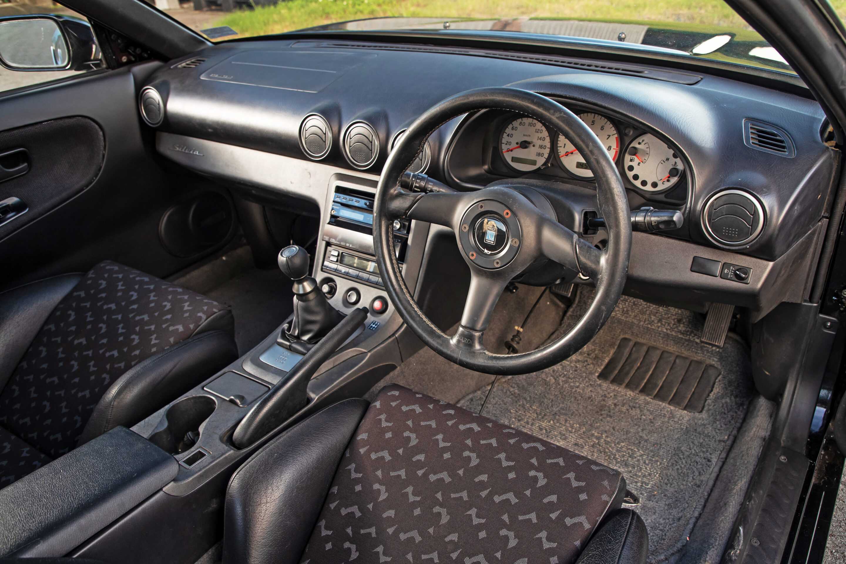 メーターやダッシュボードはS15シルビア用に交換。これは、6速MTへの換装で車速パルスの取り方が変わることへの対応策でもある。この車両はエアコンシステムもS15用に変更されているが、バルクヘッド加工などかなり苦労を強いられたそうだ。
