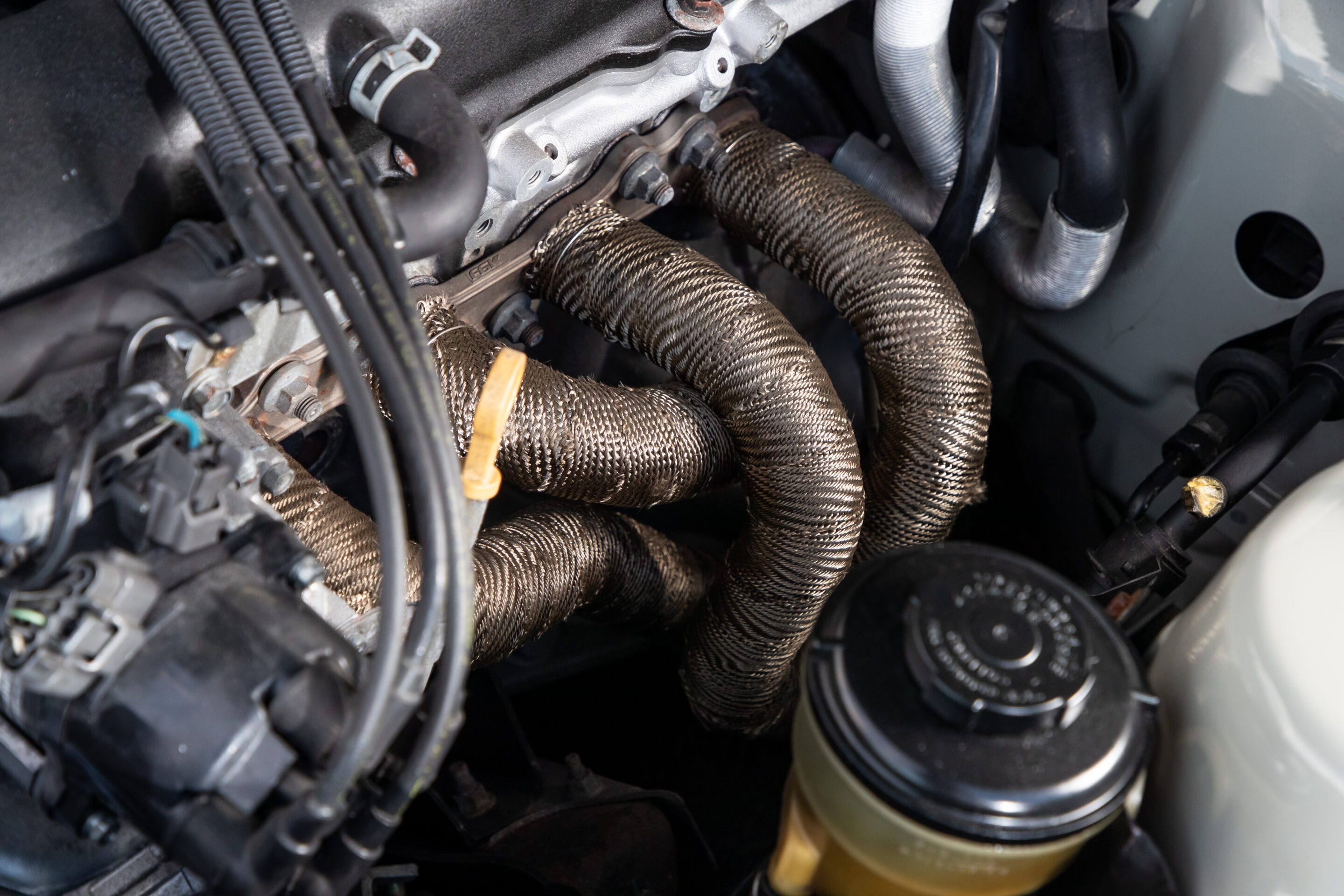 パワートレインはS15のSR20DE+6速MTを換装。チューニングは排気環境のみというライトな内容だが、不要なハーネスや補機類を撤去しているため、エンジンベイはシンプル&クリーンな印象だ。