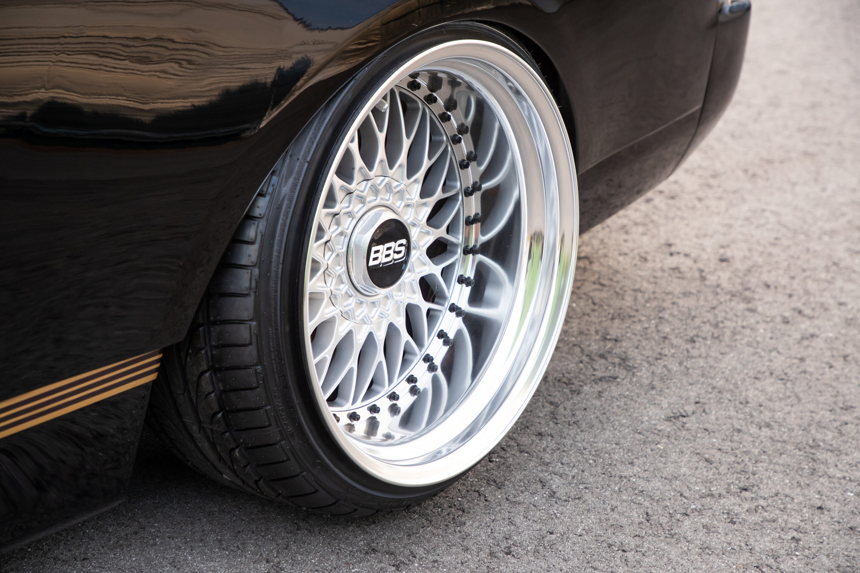 足回りはエアーリフトのエアサスでセットアップ。深リムの18インチホイールはBBSスーパーRSのリバレルで、サイズはフロント9.5Jのリヤ10.5J。そこに225/35-18と245/35-18のタイヤを引っ張り装着している。ちなみに、サスメンバーも前後S15用に変更済みだ。