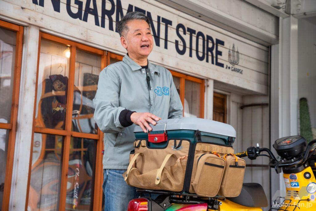 自身もカブ乗りとして知られ、これまでにカブ向けアパレルやアイテムを多数リリースしてきた人物。