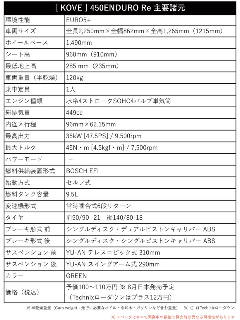 フレンドリーな新型車、林道仕様コンペマシン! KOVE450RnduroReにローダウン仕様を設定|試乗記