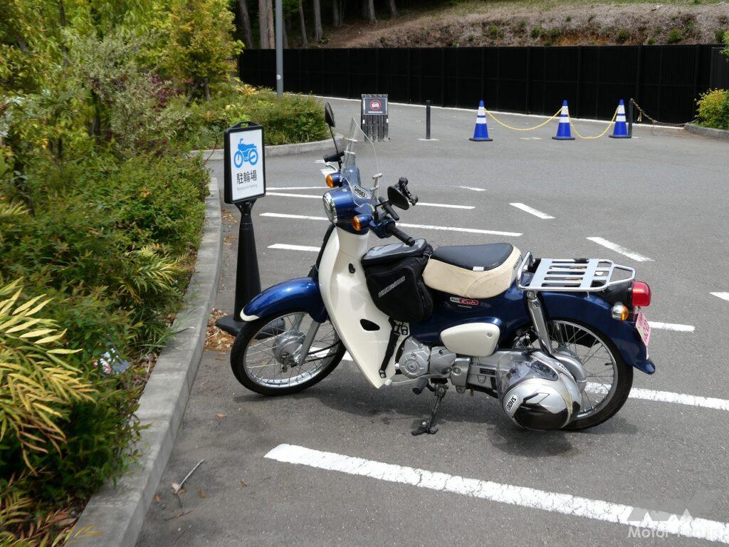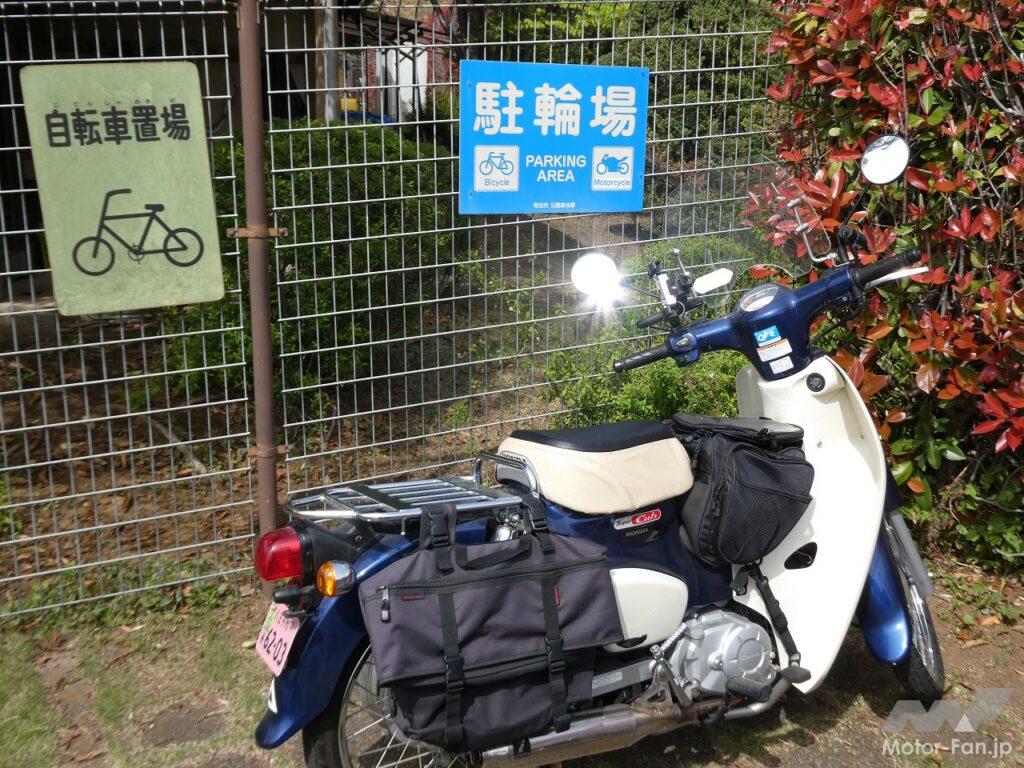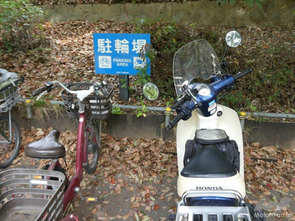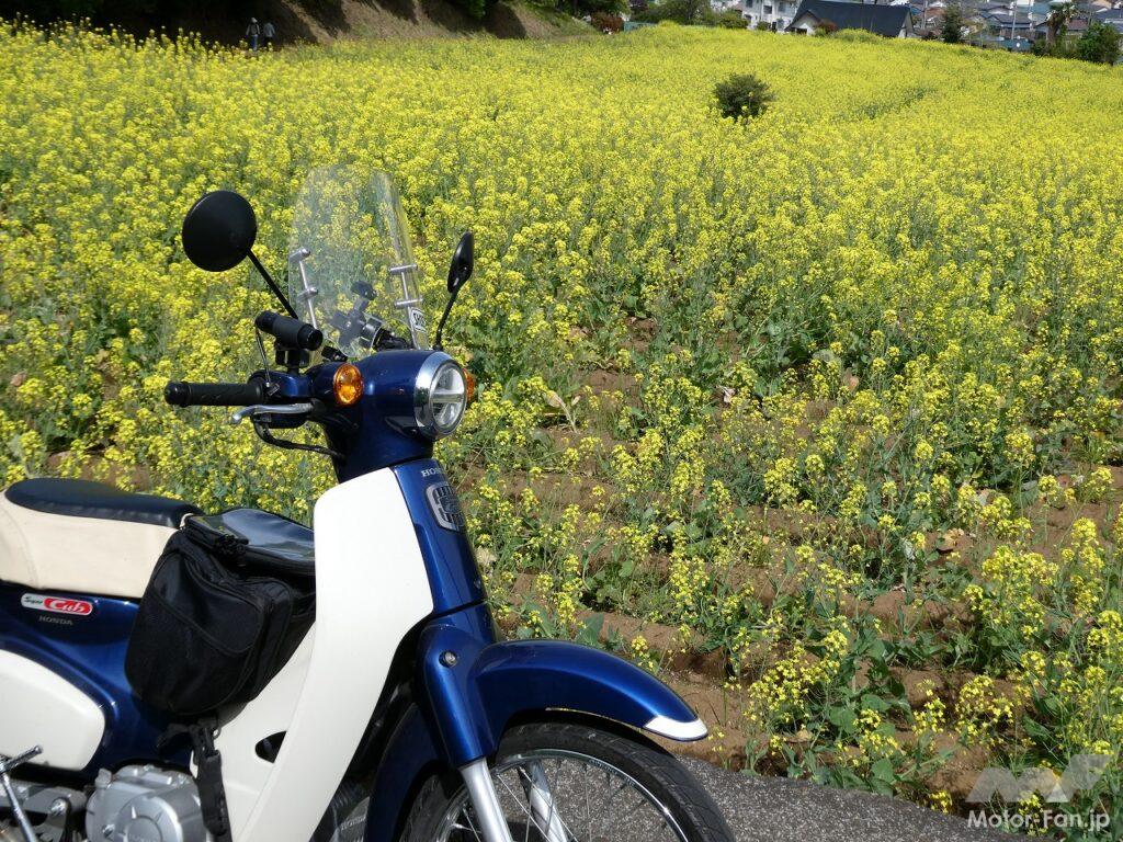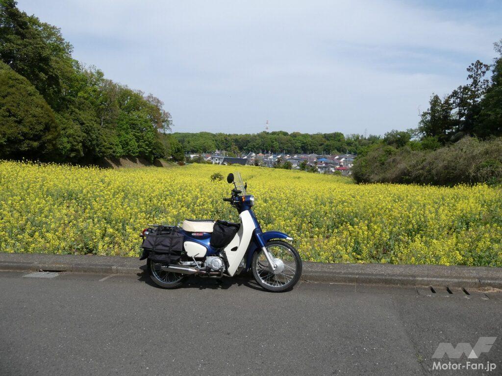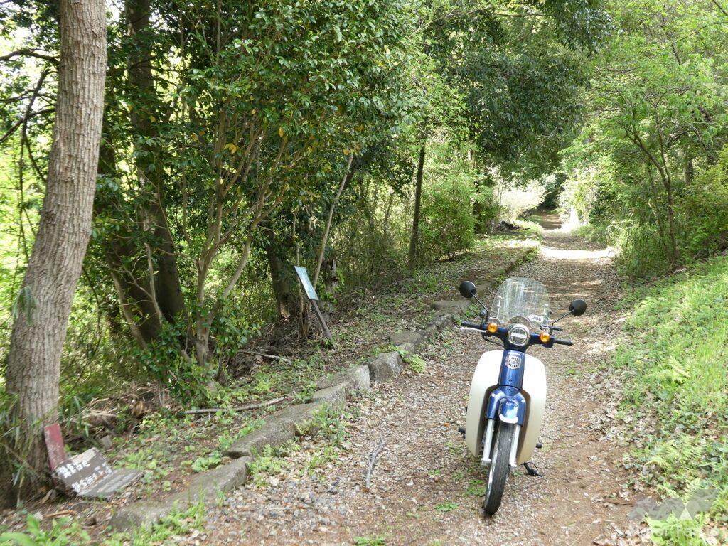 周辺の道はあまり広くないので車を駐車するのは難しい。でもカブなら問題なし。未舗装の畑の脇道にも入り込むことができた。