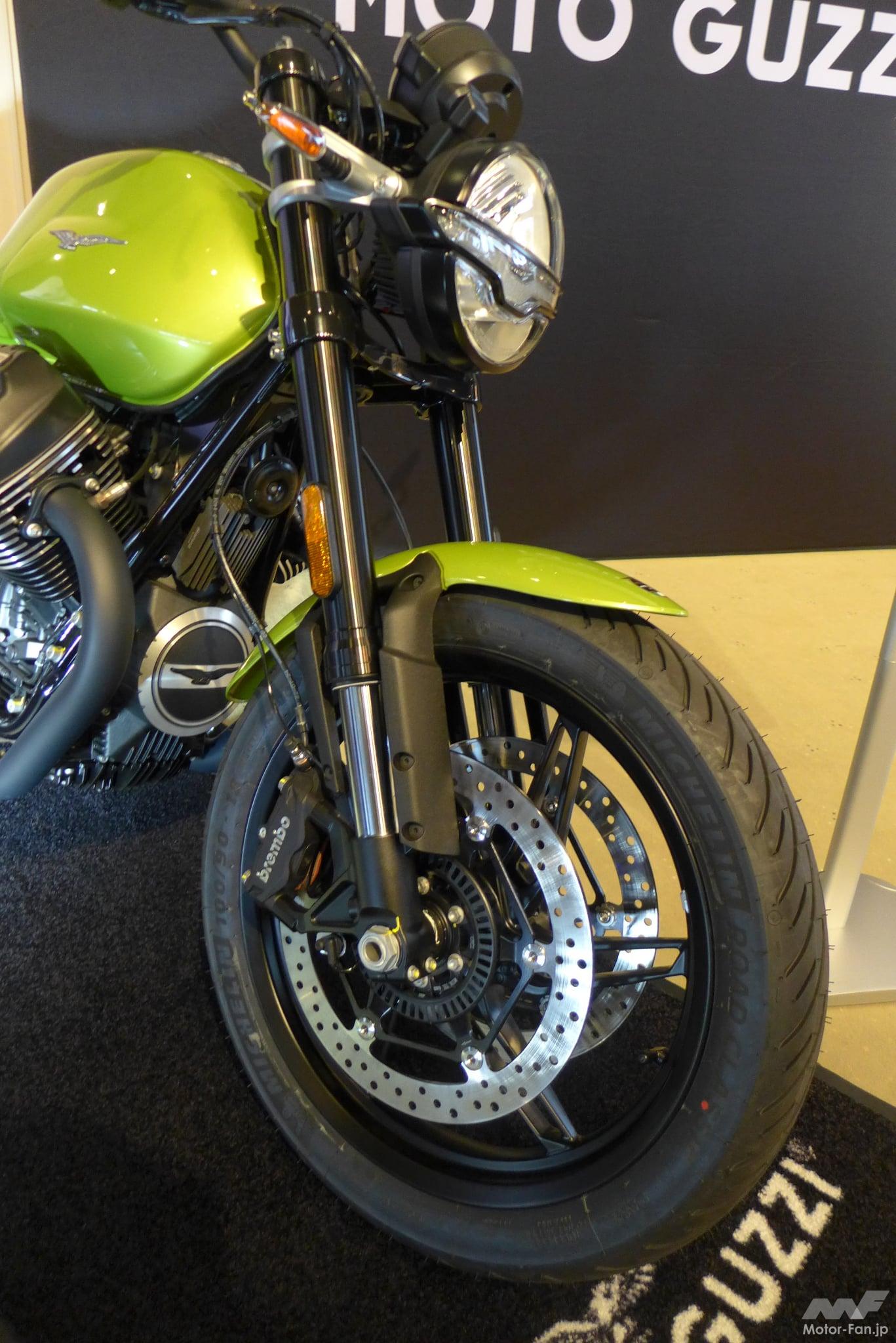 また、会場のステージ前に展示されたV7スポーツは、今年ラインナップに追加されたばかりのニューモデルで、一般へは初めてのお披露目となる。