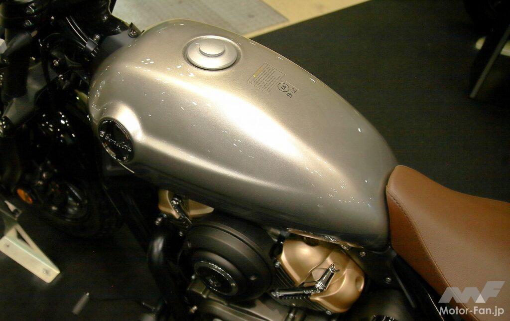 クルーザーといえばやはり“Vツイン”のイメージが強く、それは250クラスでも拭えない。プロトの担当者によると「低速ではしっかりとトルクがあり、高速巡行も問題なく走れます」とのこと。