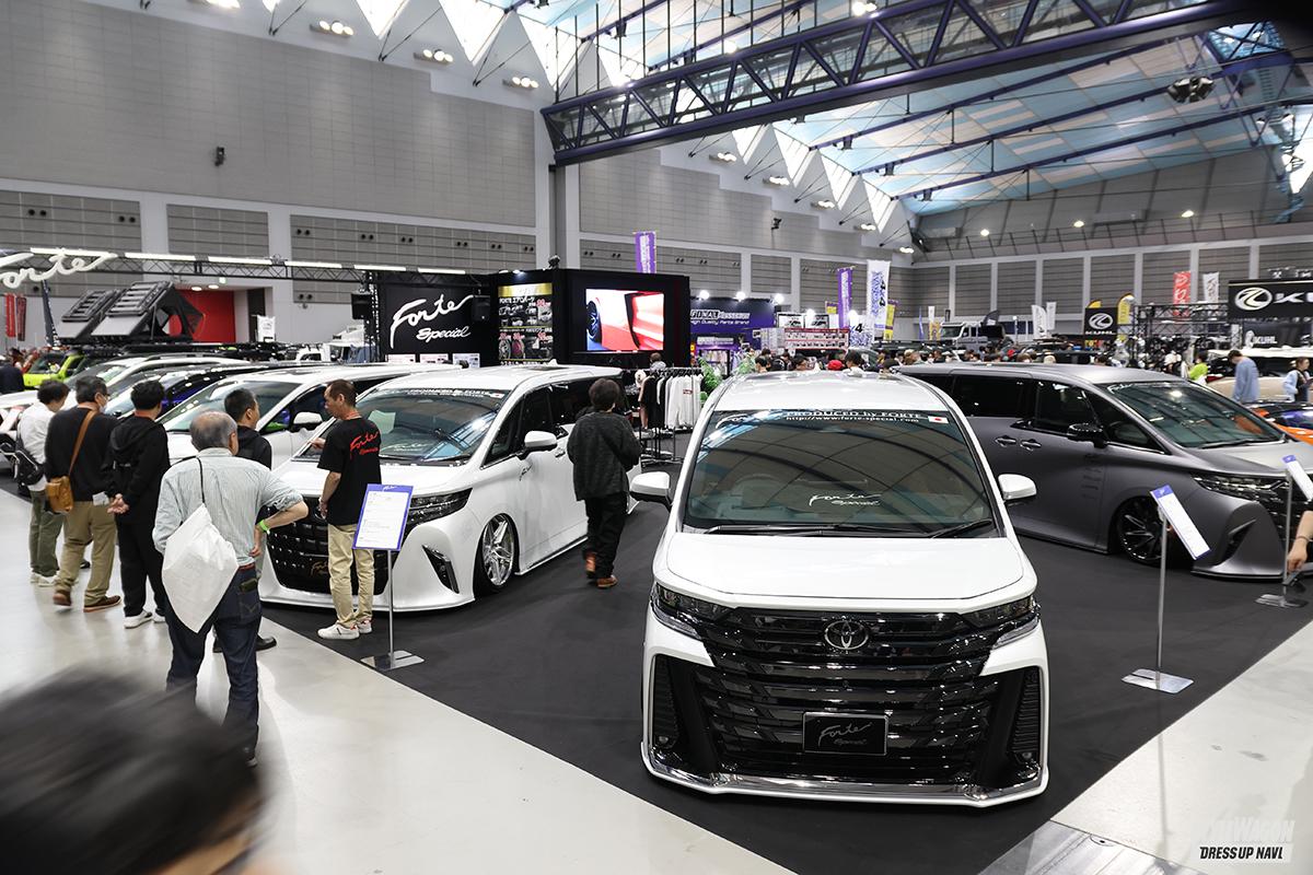 フォルテの本拠地は名古屋だが、仙台に支店を持つことを知る読者も多いのでは? そんな準地元(!?)の仙台で行われる東北カスタムカーショーにフォルテが初登場! 「元々全国的に販売してきましたが、このイベントを通じて仙台店の知名度をもっと高めたい」との意気込みでの出展だったのだ。展示は、とにかく40がズラリと並んでいたのが迫力満点だった。「30で培ったノウハウを注入した」そうで、早くもブレーキのコンバージョンまでしていたほど!!