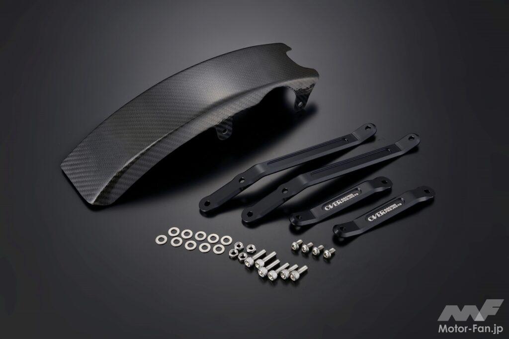 上記ステムキット装着車両用のカーボンダウンフェンダーキット。フロントアップフェンダーと併せて装着することで、アドベンチャースタイルをより強調。泥除け用としての効果が高く、純正フェンダーを外した際のエンジン保護にも役立つ。