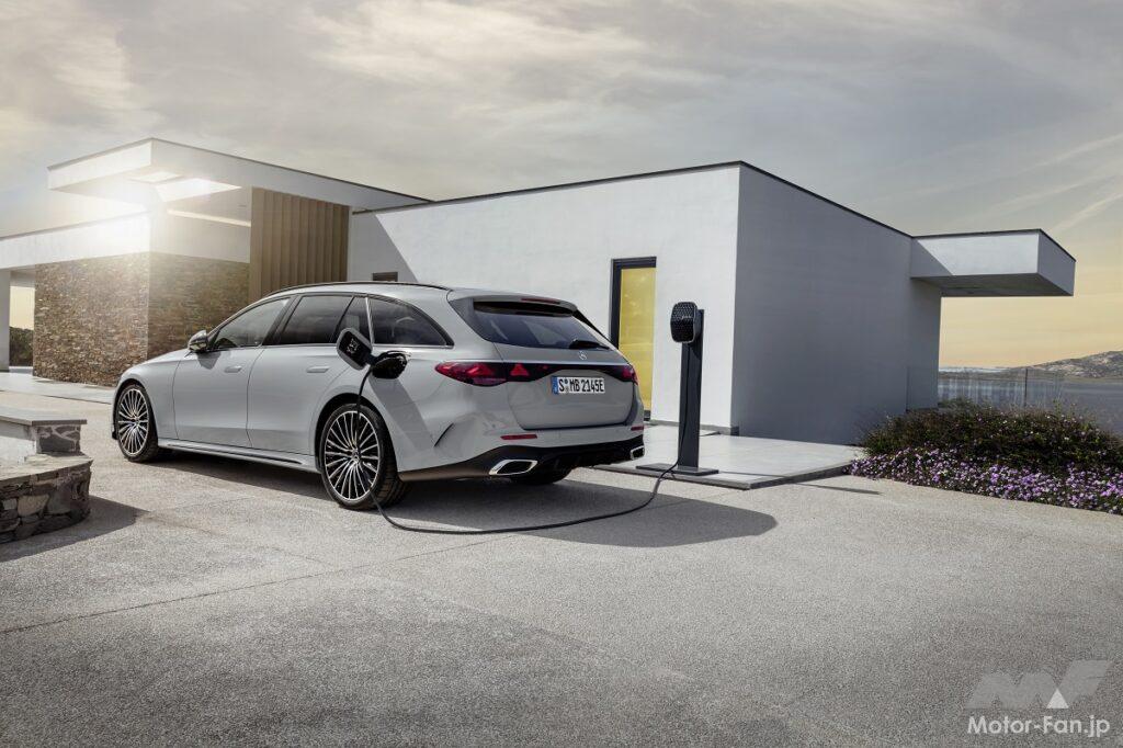 新型Eクラス・エステートには、発売時からプラグインハイブリッド(PHEV)モデルがラインアップされている。出力機にはインターナルローター付きの永久磁石式同期モーターが搭載され、440Nmのピークトルクによって140km/hまでフル電動走行することができる。電動航続距離も100km以上が確保され日常使いも卒なくこなす。改良されたエネルギー回生機能は最大100kWを回収。これにより、油圧ブレーキの使用を最小限に抑えたワンペダルドライブを体感することもできる。自社開発された第4世代の高電圧バッテリーは、パウチ型の96個のセルで構成され、25.4kWhのエネルギー容量を誇る。オプションの55kW直流充電器を使えば、約30分で0-100%のフル充電を完了させることができる。