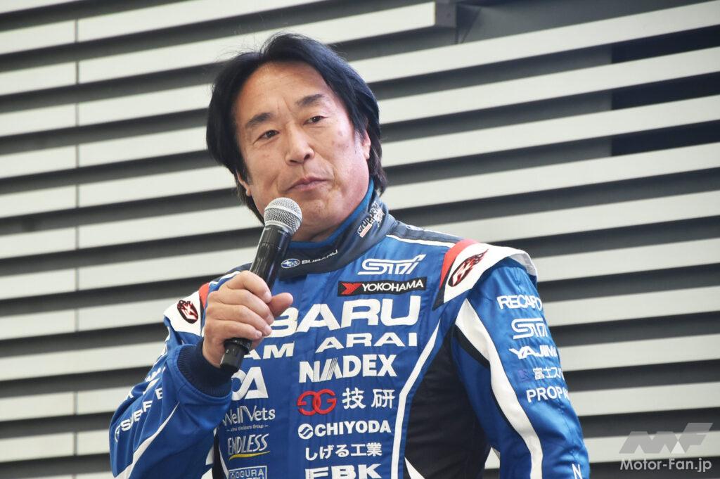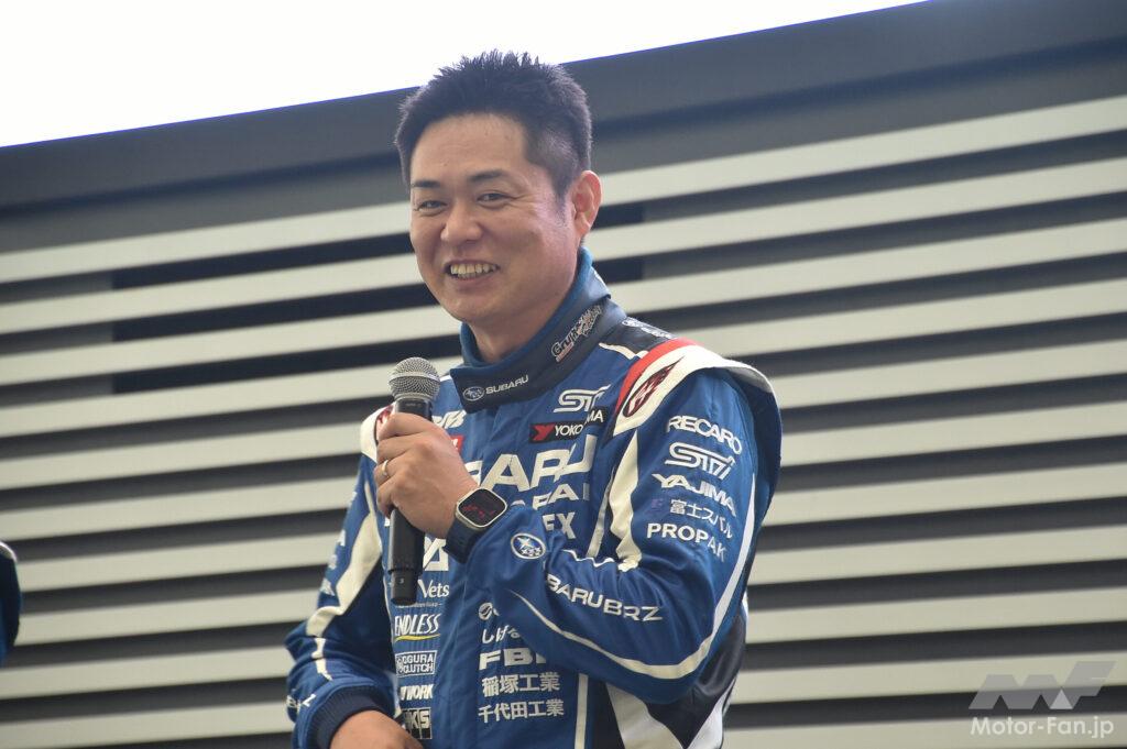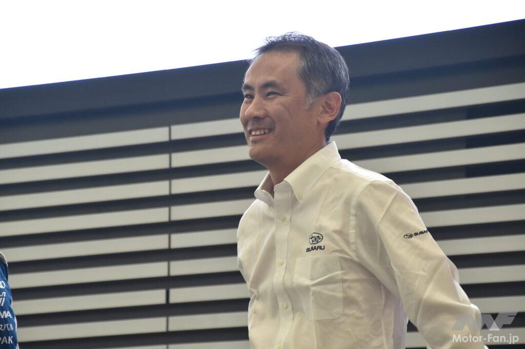 スバル車内ではそれを踏まえた体制が構築され「商品”革新”本部」を設立。同部署内の「スポーツ車両企画室」がモータースポーツとスポーツ車両を扱う。今回の発表会で登壇した山田大輔氏は「MS(モータースポーツ)技術企画G(グループ)」、WRXの6速MT車「STI Sport #」開発責任者の小林正明氏はが「スポーツ系商品G(グループ)」だ。