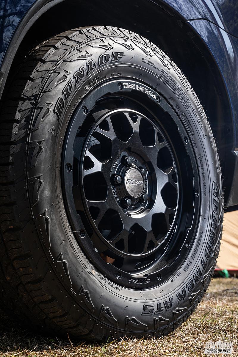■WHEEL:RAYS DAYTONA M9+(17×7.0J+45)■TIRE:GRANDTREAK AT5(235/65R17)■EXTERIOR:ルーフBOX=AVA、サイドオーニング=ダーチ、ヒッチメンバー=Curt■TUNING:スタビライザー=CUSCO■CAMP GEAR:N/A