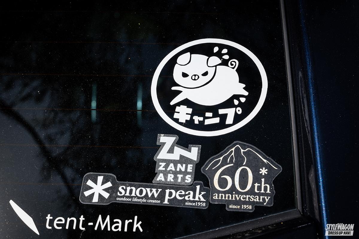 SubaruCAMPの運営サイドにも深く関わっているこぶた氏は、かつてコブタレーシングの一員として草レースでも活動していた根っからのクルマ好き。写真ではサイドオーニングが展開されていませんが、これは撤収準備中に取材対応してくれた為でありがとうございます。お気に入りのホイールM9+は17×7JのPCD100のSUBARUピッチって奴ですね!!