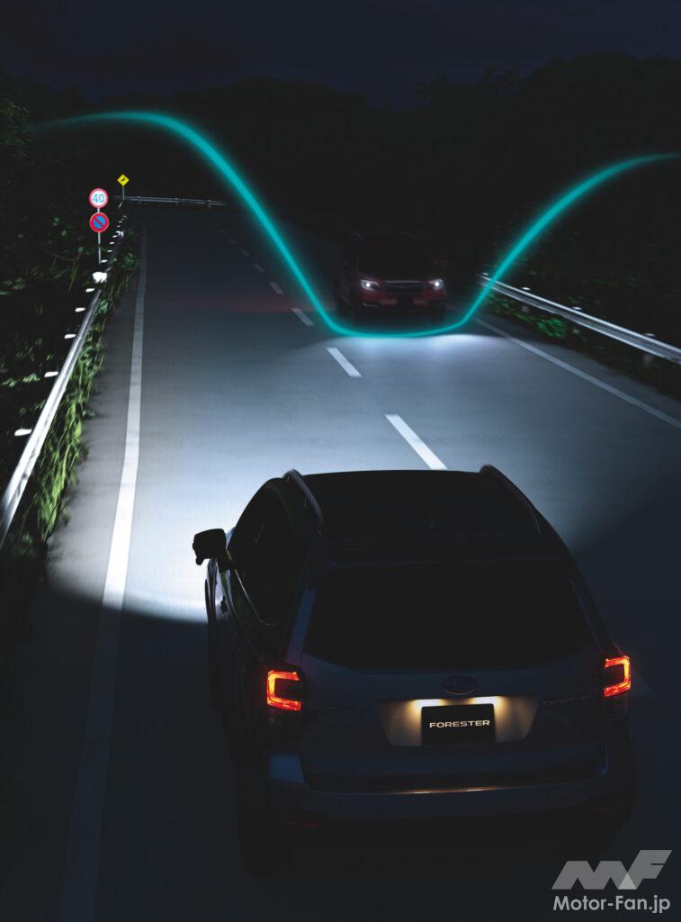 刷新されたヘッドランプには、ステアリング連動機能やハイビームの照射範囲を無段階で調整するアダプティブドライビングビームを採用。同時に光源をHID(ロービーム)/ハロゲンから、LEDヘッドランプへ変更。1灯でハイビームとロービームを賄うバイファンクションプロジェクター式を採用し、ステアリング操作に合わせ、ヘッドランプの光軸を左右に動かすステアリング連動ヘッドランプも採用した。