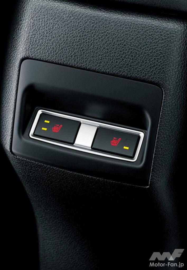 ユーティリティ面では、2.0iを除く全車にリヤシート左右席にHI-LOW 2段の温度調整機能を設定した独立式のリヤシートヒーターを採用したほか、運転席パワーシートに、メモリー機能も追加された。ドアガラスの板厚アップやシール部品の強化、リニアトロニックの改良などにより走行時の静粛性も大きく向上している。