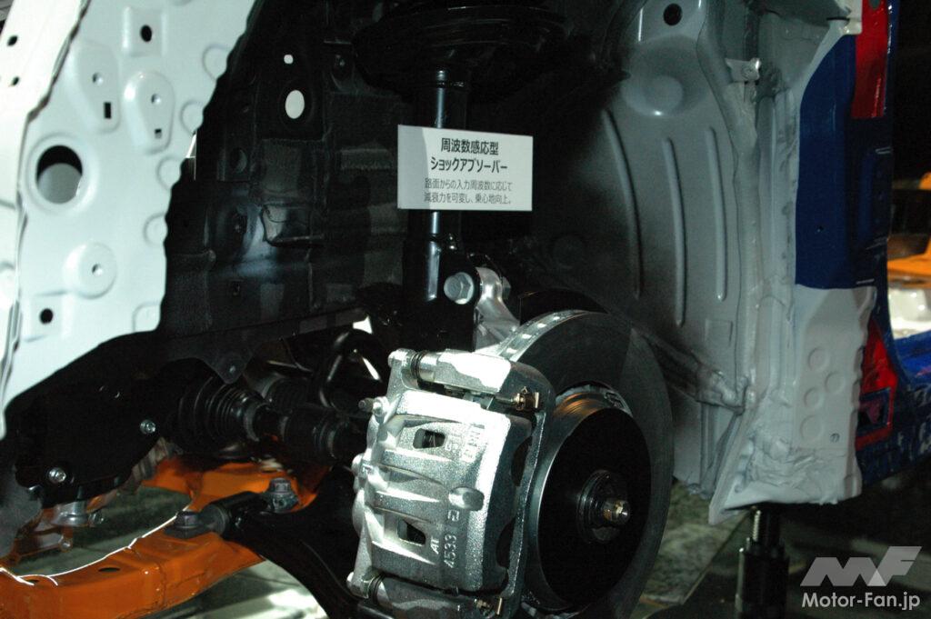 サスペンションもTNGA用マクファーソンストラット式をフロントに、従来型をベースに新開発したダブルウィッシュボーン式を装着。ヴェルファイアではこのサスペンションも専用セッティングが施されている。