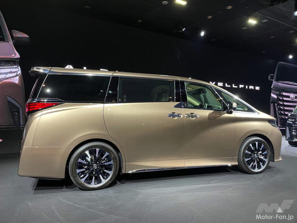 アルヴェルのデザイン上の特徴であり、他車にフォロワーも生まれるほどだった、通称「アルヴェルピラー」。Bピラーの後側を前傾させるこのデザインは、世代を追うごとに角度が大きくなっていた。しかし、今回のモデルチェンジではついに見えなくなった。ピラー自体はほぼ垂直になり、ブラックアウトすることでグラスエリアを連続的に見せるデザインになっている。