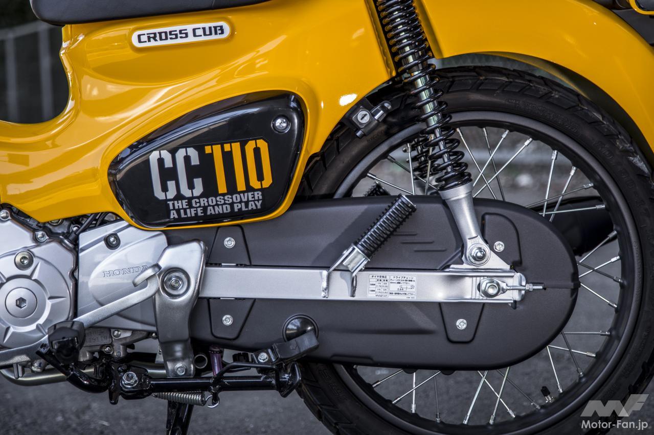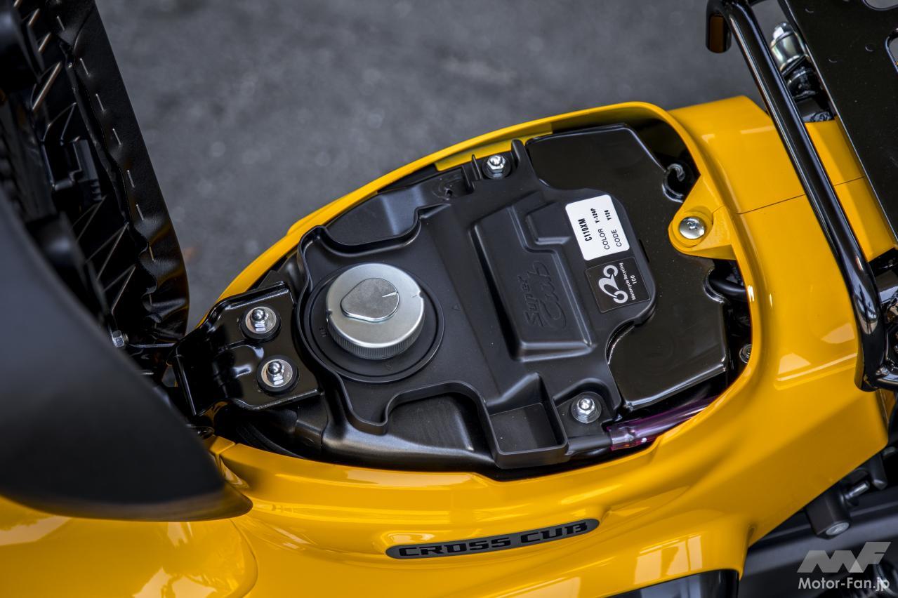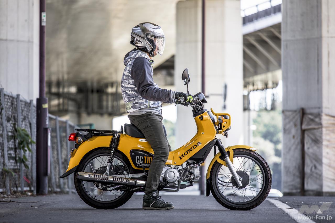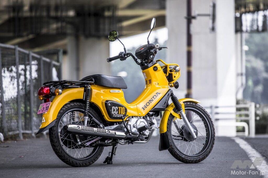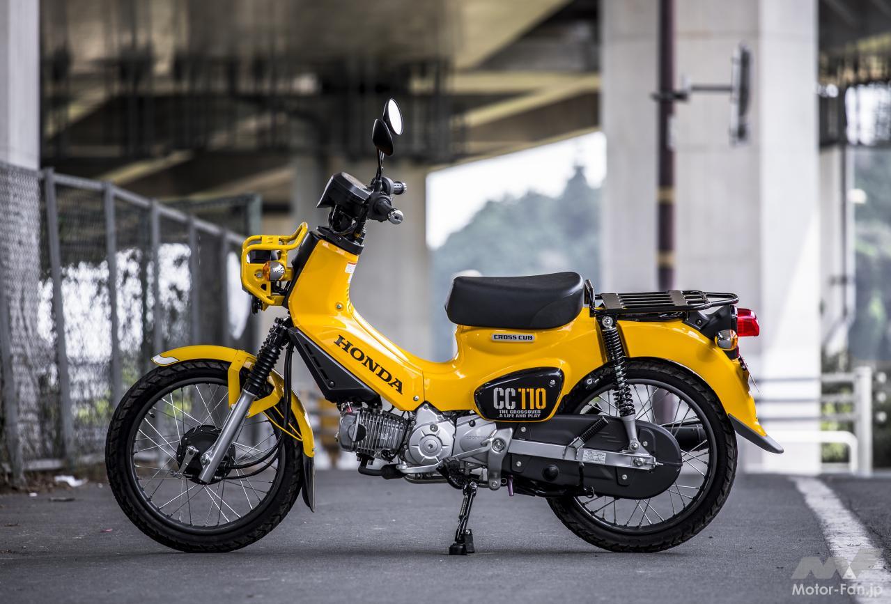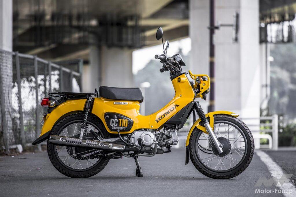 現行のクロスカブ110はハンターカブ然としたアクティブなボディスタイリングが特色だ。そしてレジャーバイクとして幅広い年代から支持されている。CT125・ハンターカブの登場でクロスカブ110は、中途半端な位置に追いやられてしまったように思うかもしれないが、クロスカブはもともと、ハンターカブ登場までの橋渡しバイクとして開発されたわけじゃない。たしかにコンセプトは近いかもしれないが、クロスカブはレジャーバイクとしての良さを前面に押し出しながらも、普段使いに便利な日常性の高さがひとつのウリなのだ。