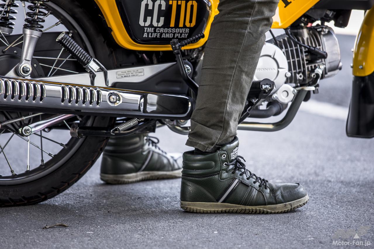 784mmと高めのシートなので、足つき性は良くない。シート形状やサスペンションの作動性の問題からか、800mmのシート高があるCT125より足が着きにくいと感じるところもある。ただ、車体を引き起こすときの重さは明らかにクロスカブのほうが軽く、取り回しでの不安はない。