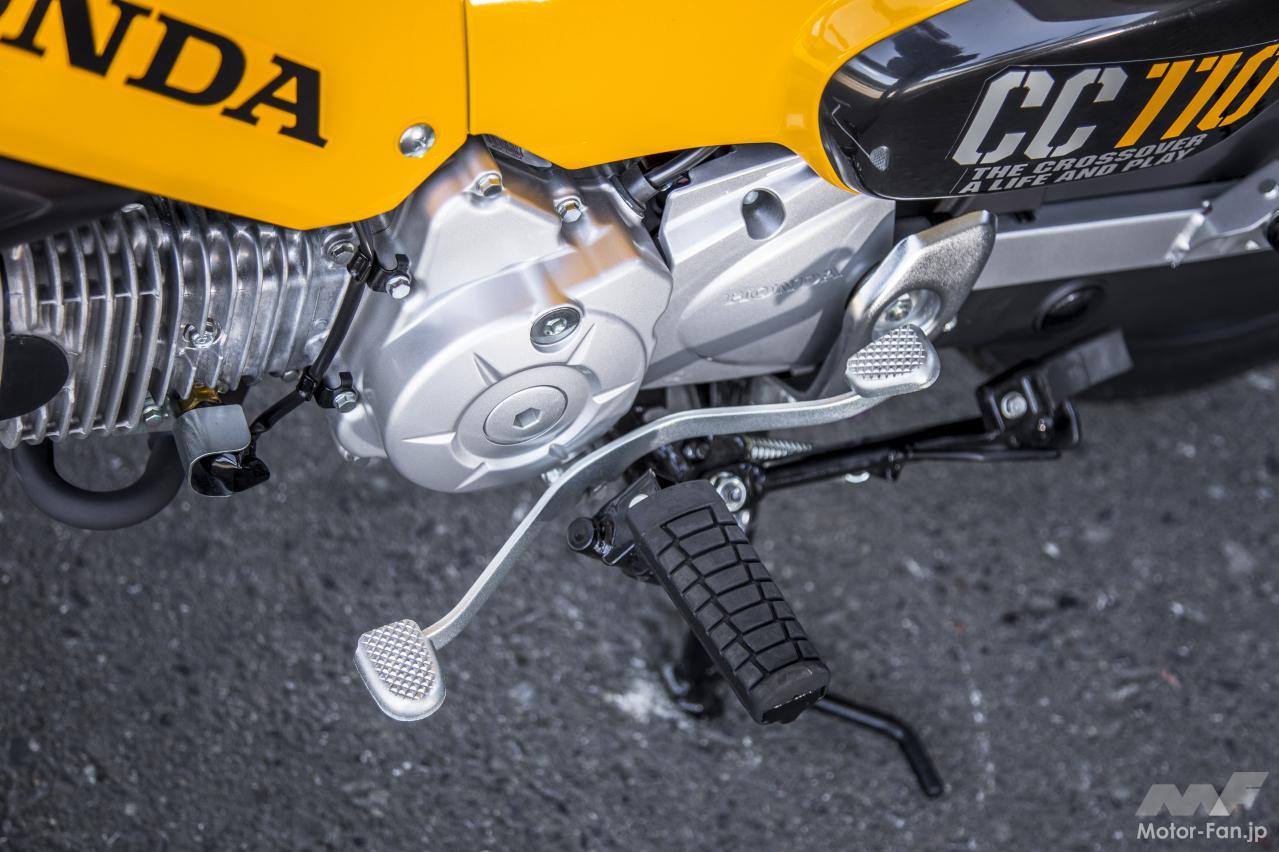 エンジンは決してパワフルなわけじゃない。アクセルを開けたときの力強さではCT125に劣る。だがスムーズにレスポンスしてくれるので、多少雑なアクセル操作をしちゃっても不安な挙動は起こさない。エンジンには伸びもあるから一般道での走行に問題なし。それこそ80km/hのスピードで流れる郊外の国道バイパスだって、流れに乗って走れる。山道に入って登りが続く状況では、もう少しトルクがほしいなと感じることもあるけれど、先を急がずのんびり行けばいいかと気持ちを切り替えれば大した問題じゃない。実はこの辺の感覚はCT125にも感じた。クロスカブに比べてパワーはあるがそのぶん車重も重たいので、結果的には大差ないのだ。