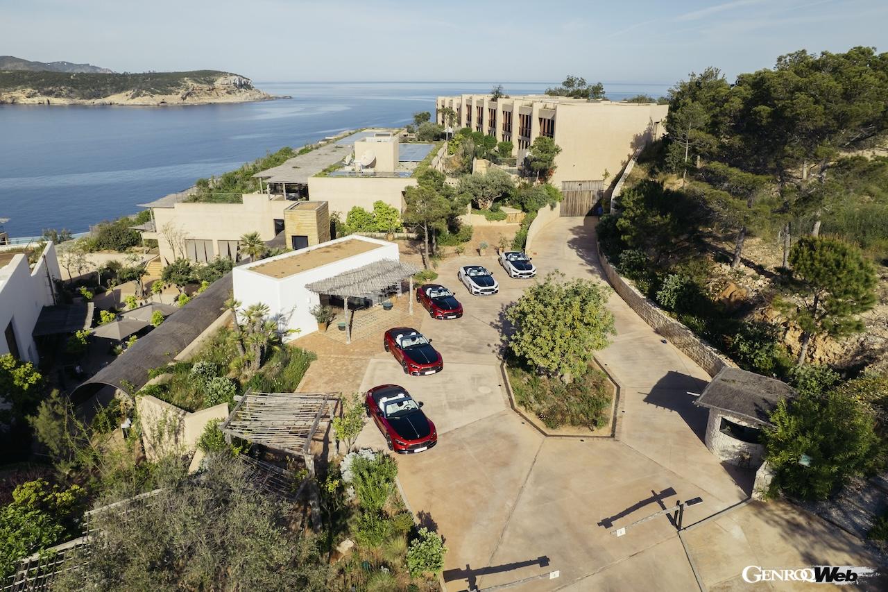 シート後方には、エアロダイナミクスレベルを大幅に向上させる「ダブルスクープ」を配置し、特別なモデルであることをアピール。このダブルスクープは、ボンネットに配置されたクロームフィンとともに、ソフトトップを下ろしたときに、エレガントでスポーティなサイドセクションが表現された。