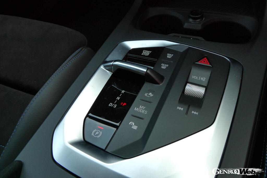 ドライビングモードは「パーソナル」「スポーツ」「エフィシェント」など全7種類。モードによってスロットルレスポンスやステアリングフィールが変化するが、スポーツサスなどのダンパーの調整は電子制御可変ではなく機械制御の周半数感応型を備える。変速モードをSレンジにすることでパドル操作によるマニュアル変速モードに移行できる。左パドルの長引きでスポーツブースト機能が作動するが、やはり「M」と呼ぶには物足りなさが残る。