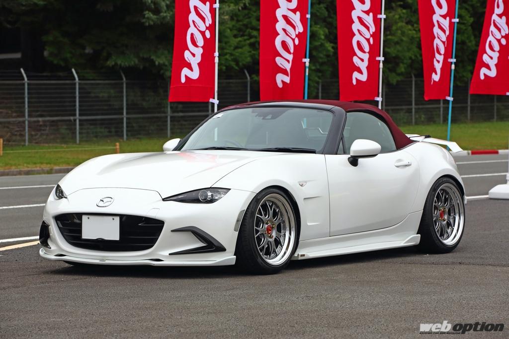 この純白に煌くND型ロードスターのオーナーは22歳の女性だ。運転免許を取得後、ディーラーで見たロードスターに一目惚れして購入。以降、クルマ好きの父親と二人三脚でモディファイを続けているそうだ。