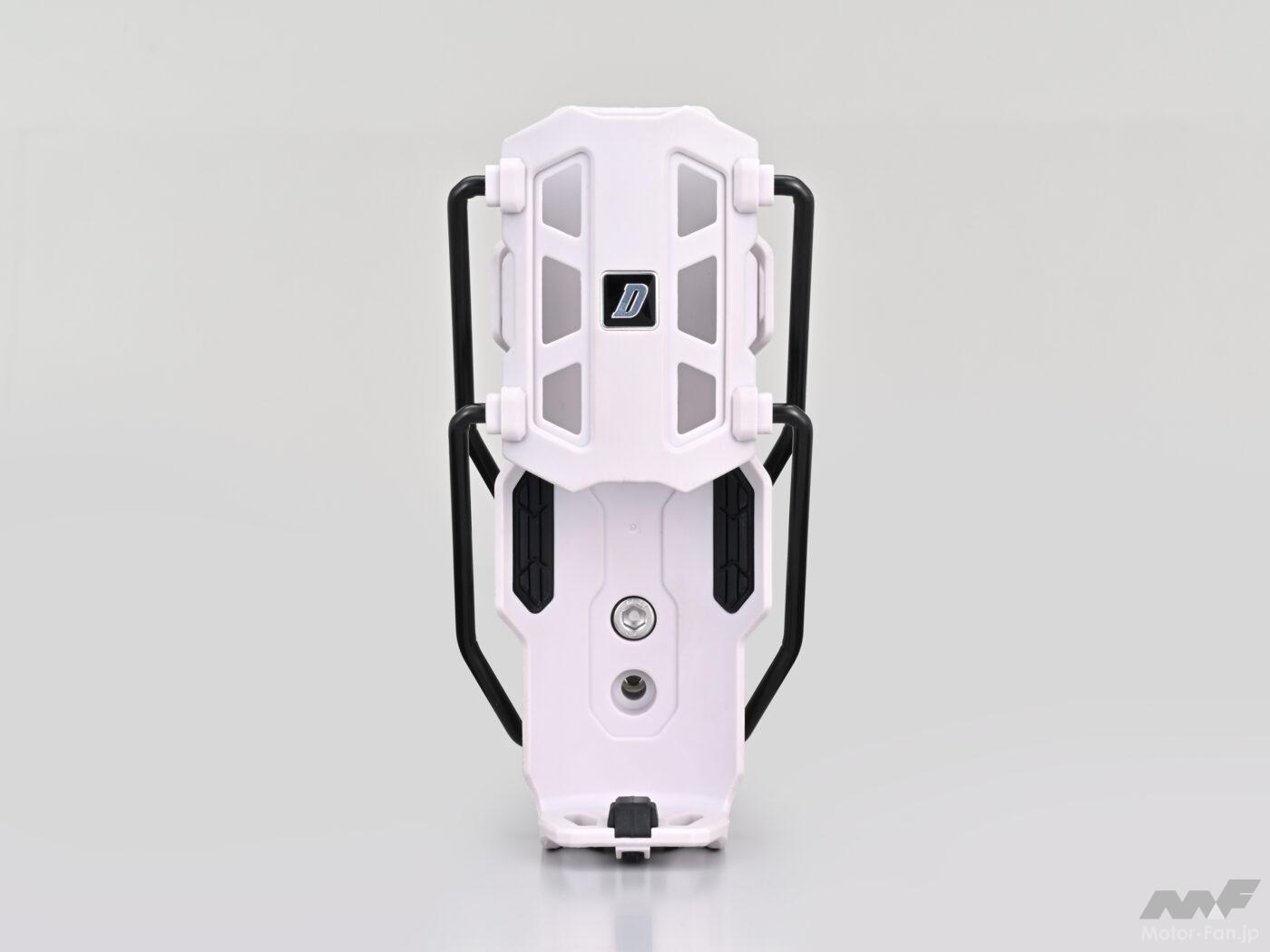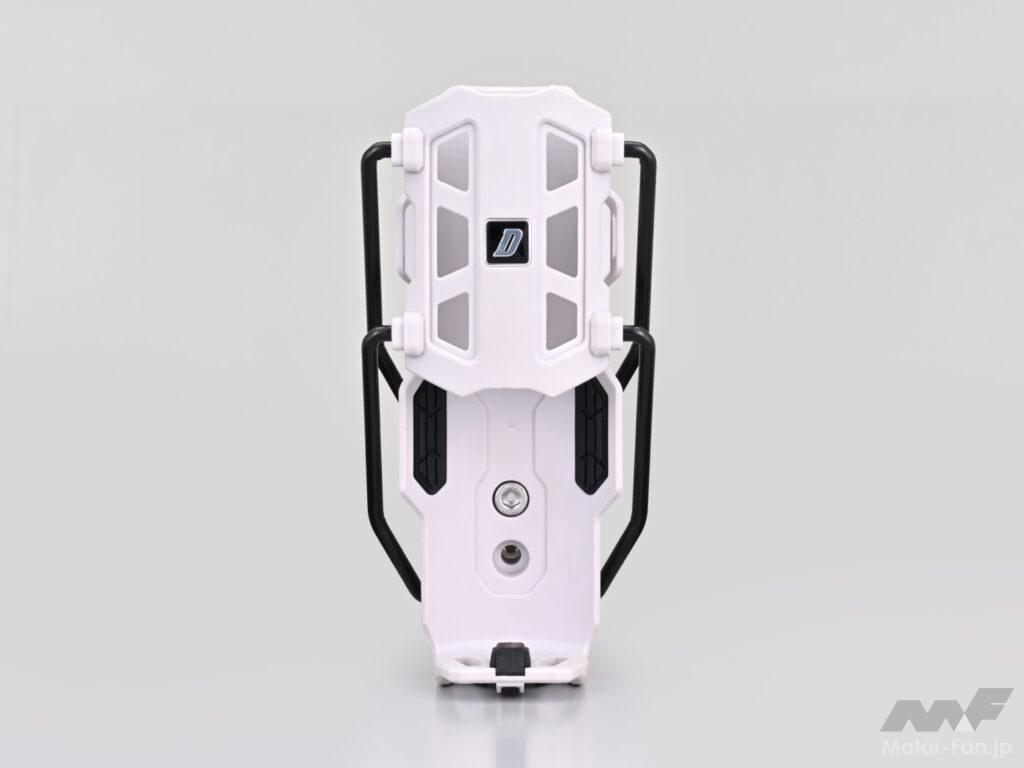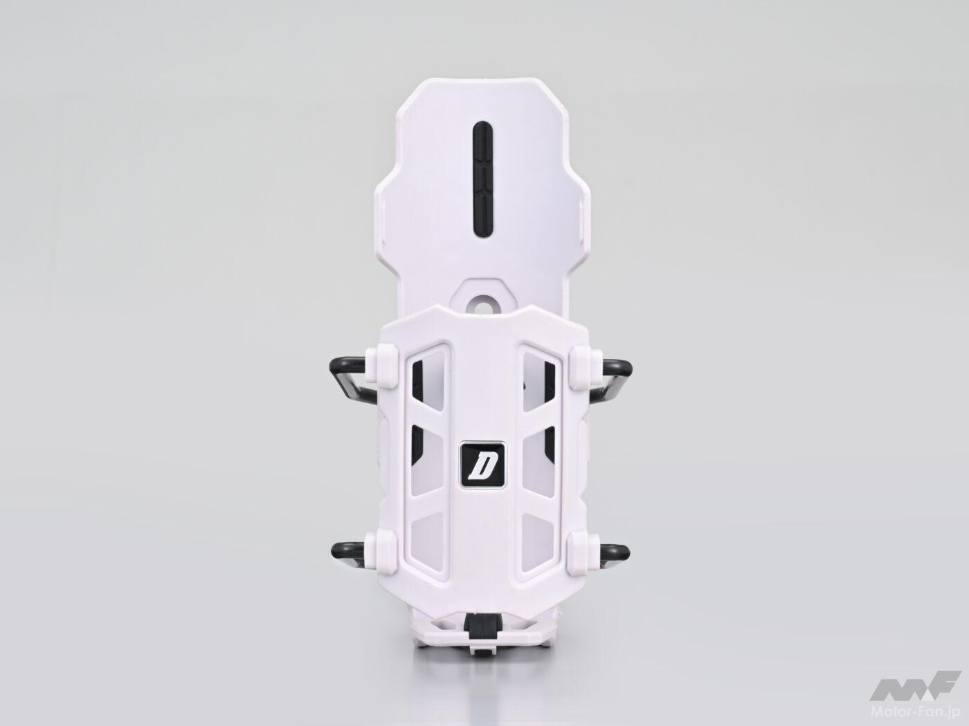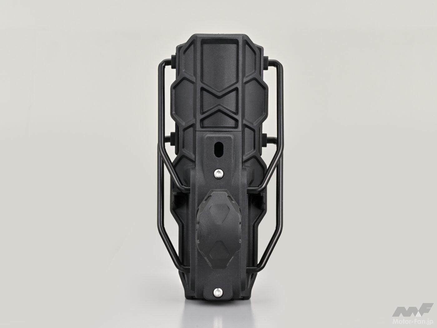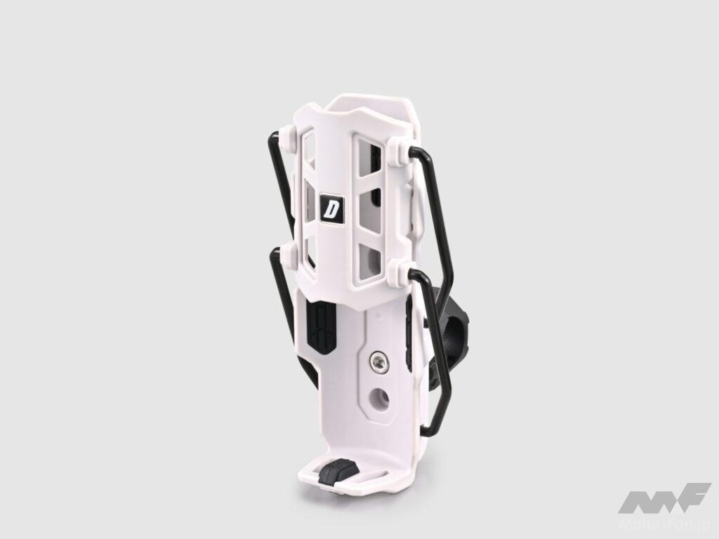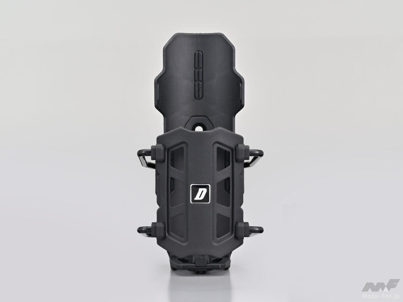 前パネルを持ち上げて飲み物を置き、手を放せばバネの力でしっかりと固定可能。細かな操作が不要だからグローブをしたままでも確実なボトルのホールドがOK。