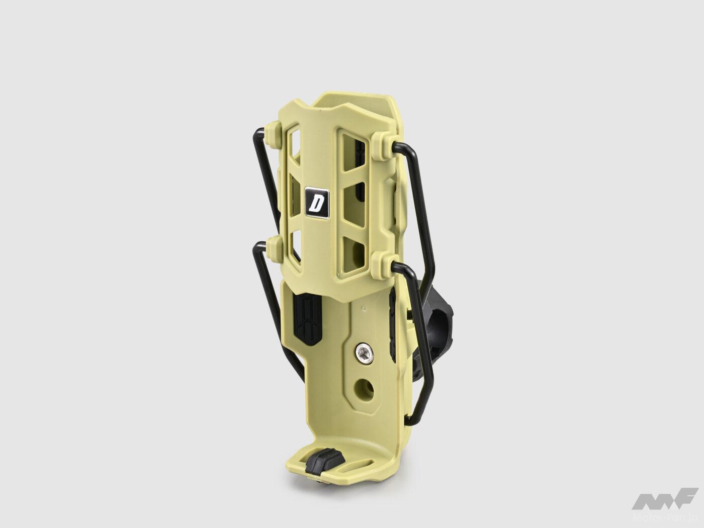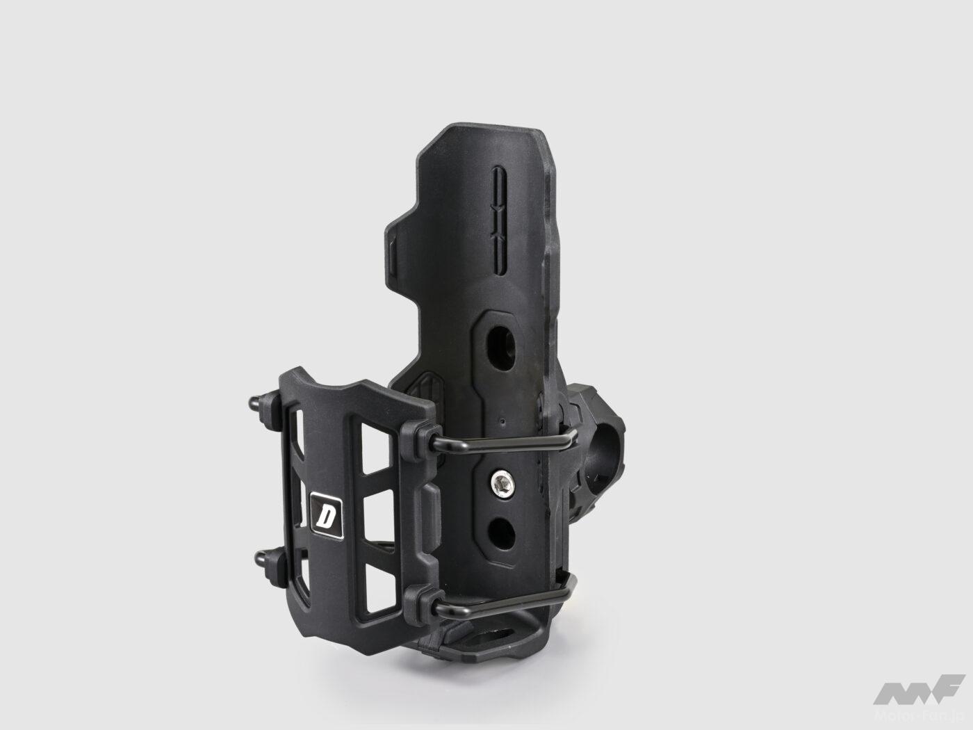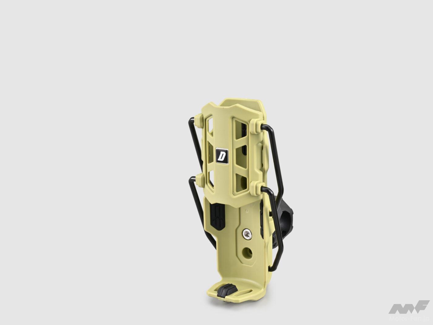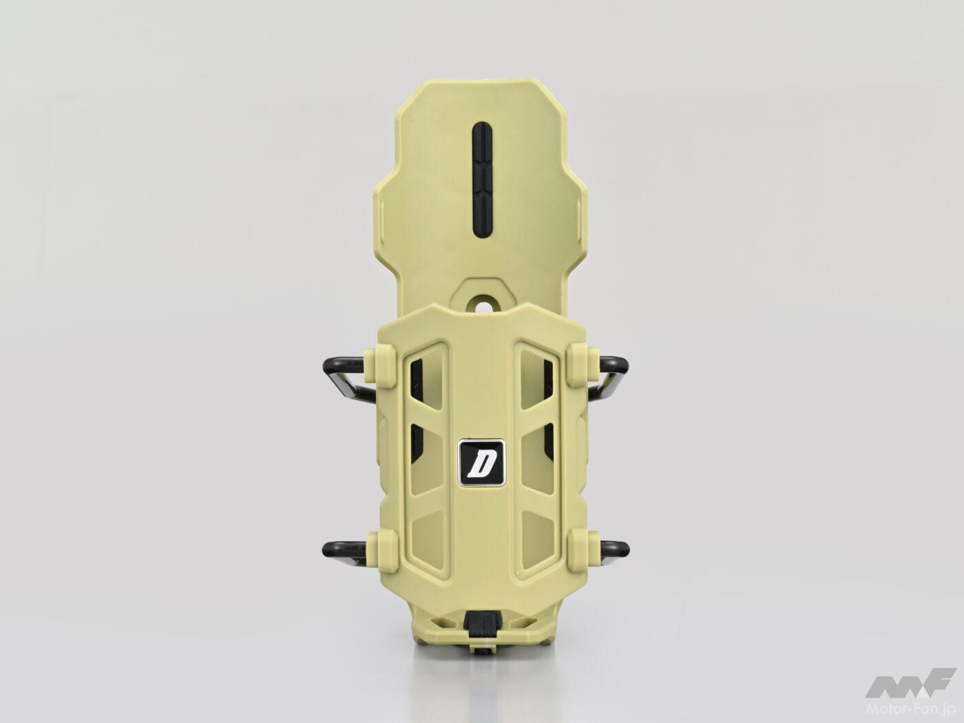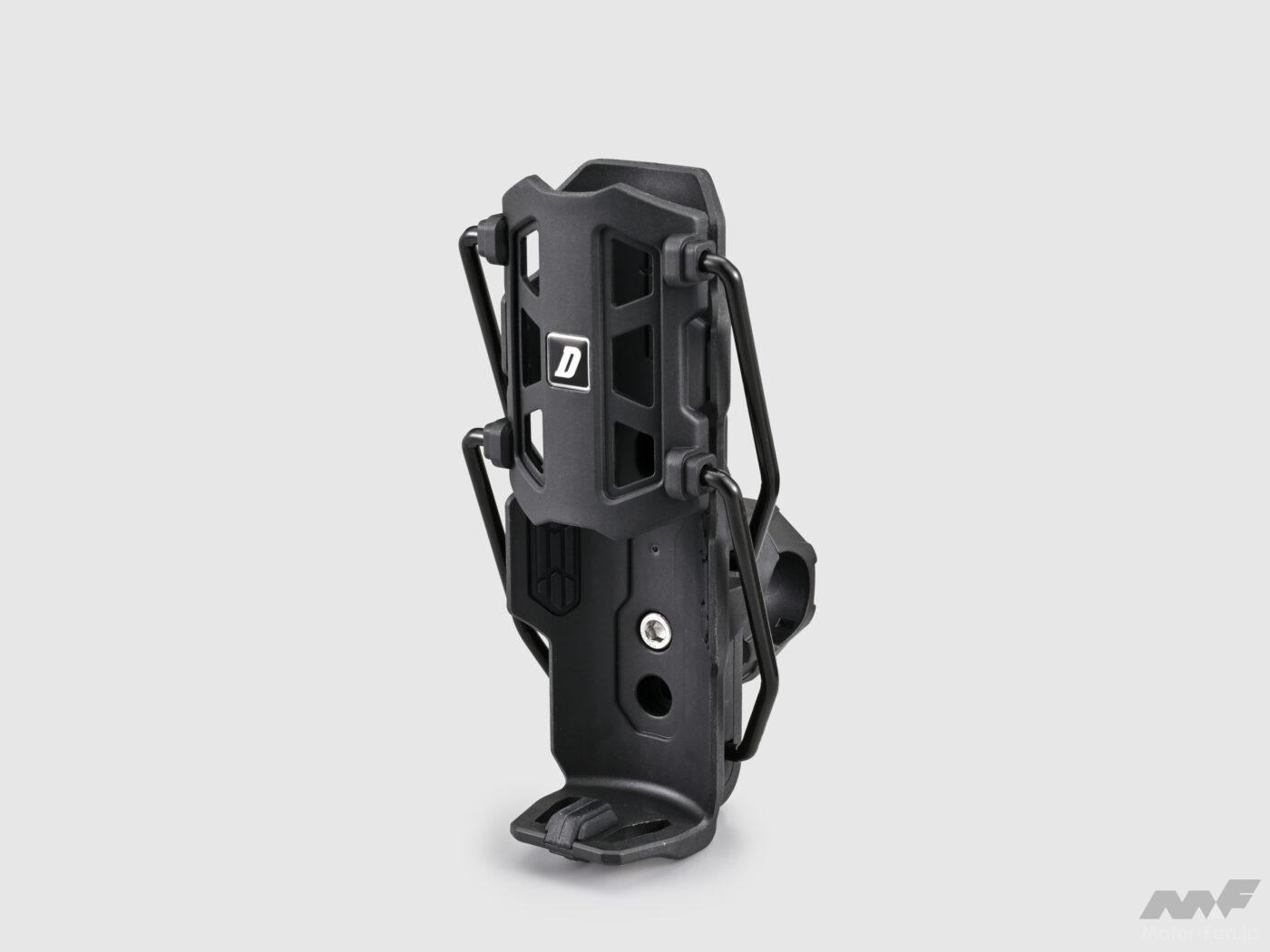 前パネルを持ち上げて飲み物を置き、手を放せばバネの力でしっかりと固定可能。細かな操作が不要だからグローブをしたままでも確実なボトルのホールドがOK。