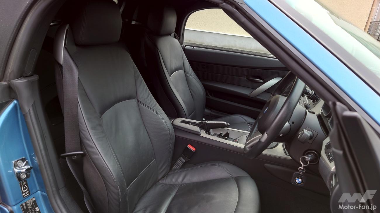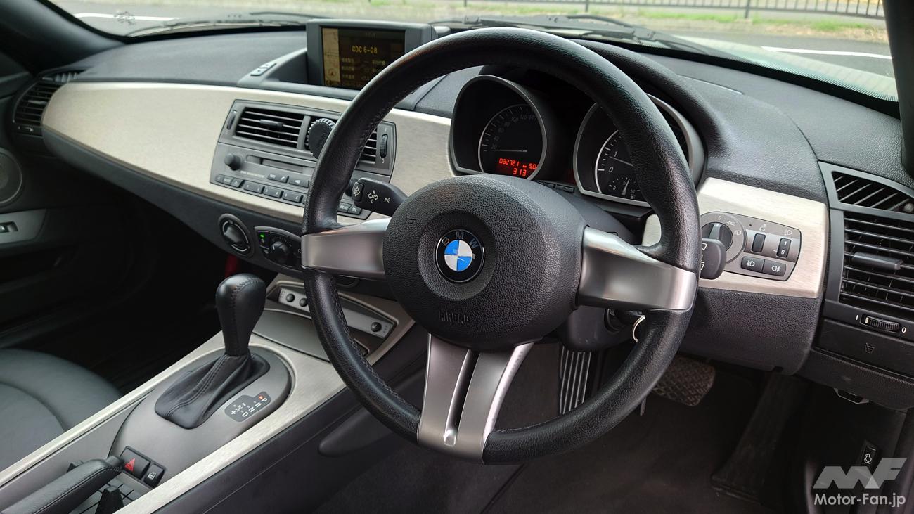 早速、実車チェックだ。2004年式のZ4 2.2iで、走行距離はなんと2.7万km! 車検も1年くらい残っている。残念ながら、記録簿はなし。ただし、フロントガラスには車検時の点検整備済みステッカーが貼られており、プロによる定期点検を受けていたことがわかる。