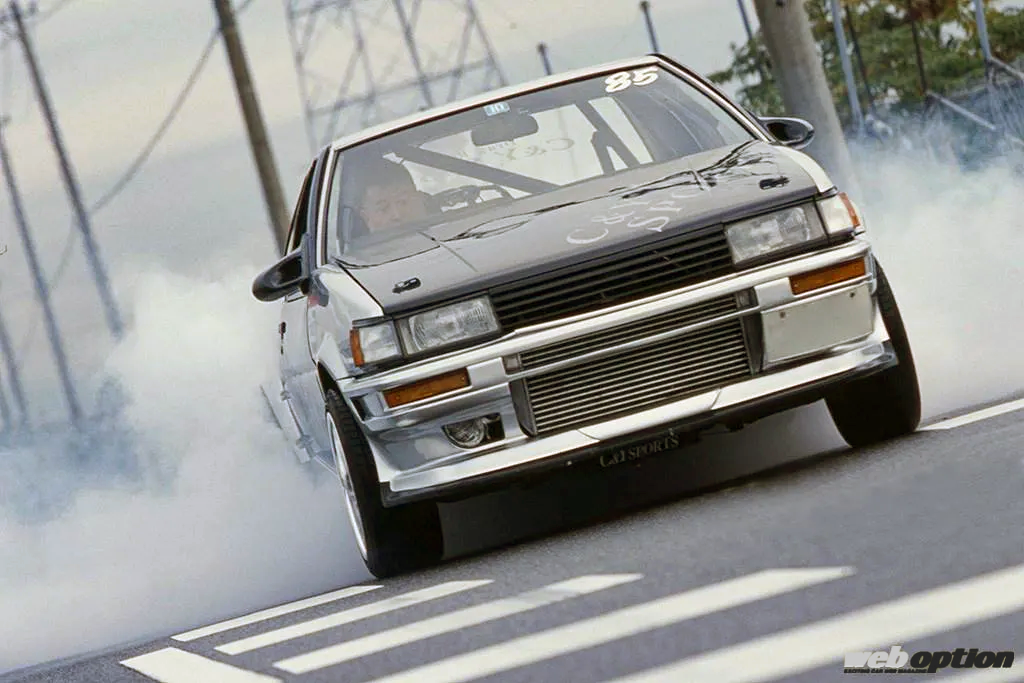 単なるハイパワーエンジンのスワップ仕様ではなく、トラクションをかけるための駆動系セッティングやボディメイキングなど見所が尽きないAE85。FRチューンドのゼロヨン最速を狙って製作された本気の作り込みは、まさに走る伝説と言っても決して過言ではないだろう。