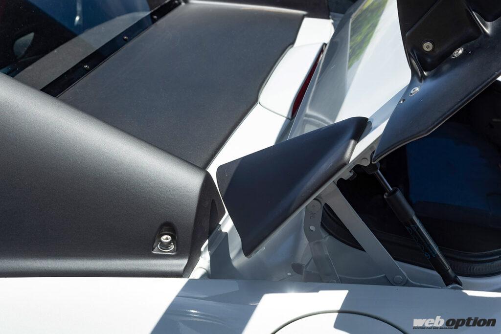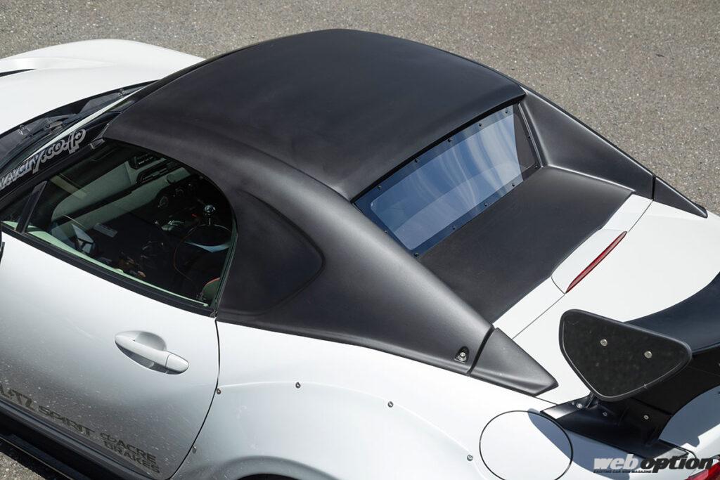 なお、今作は幌を残したままでも取り付けできるように設計されており、もちろんトランクの開閉も可能。さらに、サーキットユーザーを想定してリヤウインドウはポリカーボネイト製としているが、純正ガラスも組み込めるように開発を進めているそうだ。