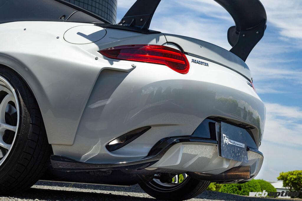 リヤセクションも、フルバンパーやディフューザーなど多彩なアイテムをラインナップする。このデモカーでは、その中から純正バンパーに追加するディフューザータイプ2(7万1500円)をセット。迫力のリヤビューを演出する。