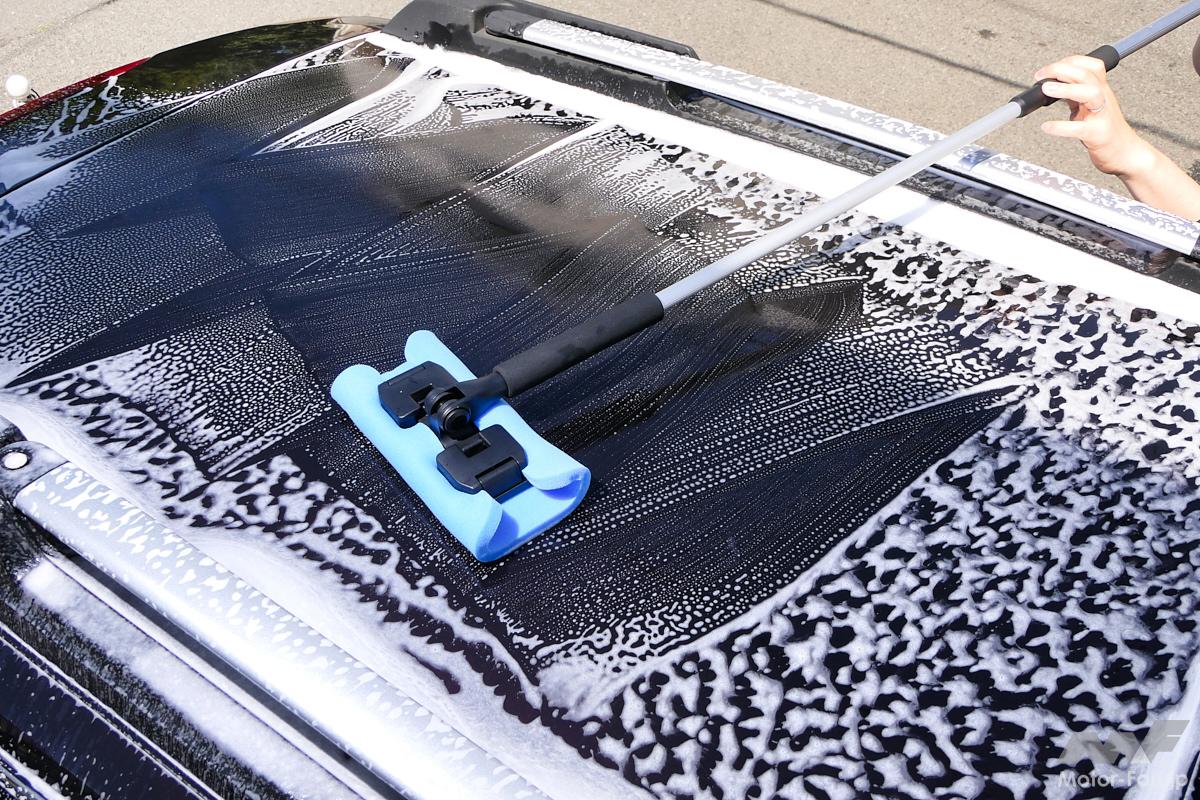 価格帯でいうと、プラスセーヌの2製品はやや高めになる。いずれも同社が得意とするPVAスポンジを使用し、凝った機構でヘッドに装着する。PVAスポンジがたっぷり水とシャンプーを含み、豊かな泡で洗車ができる。『コーティング施工車用スポンジモップ』はPVAスポンジをそのまま使って洗うもの。