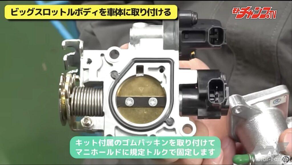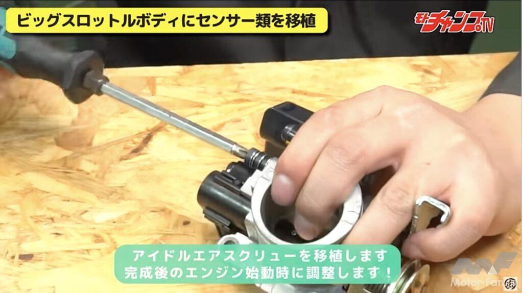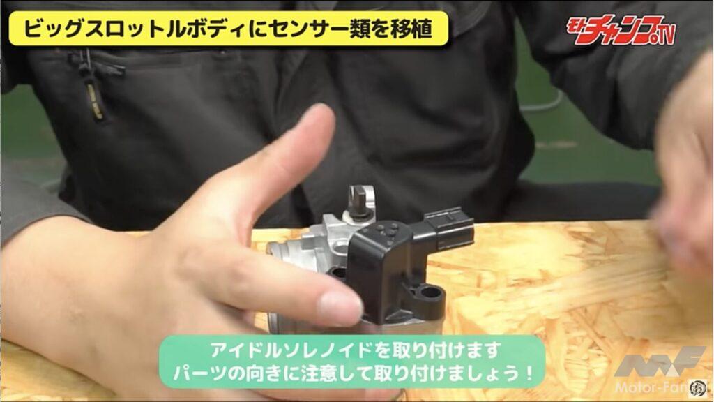 センサーとアイドルエアスクリューの移植が済んだら、いよいよビッグスロットルボディをエンジンへ装着する。ここでの注意点を下記にまとめたので写真を追って説明しよう。またそれ以外の各種センサーやホース類は取り外した手順の逆を追って組み込むことになるので写真は割愛している。