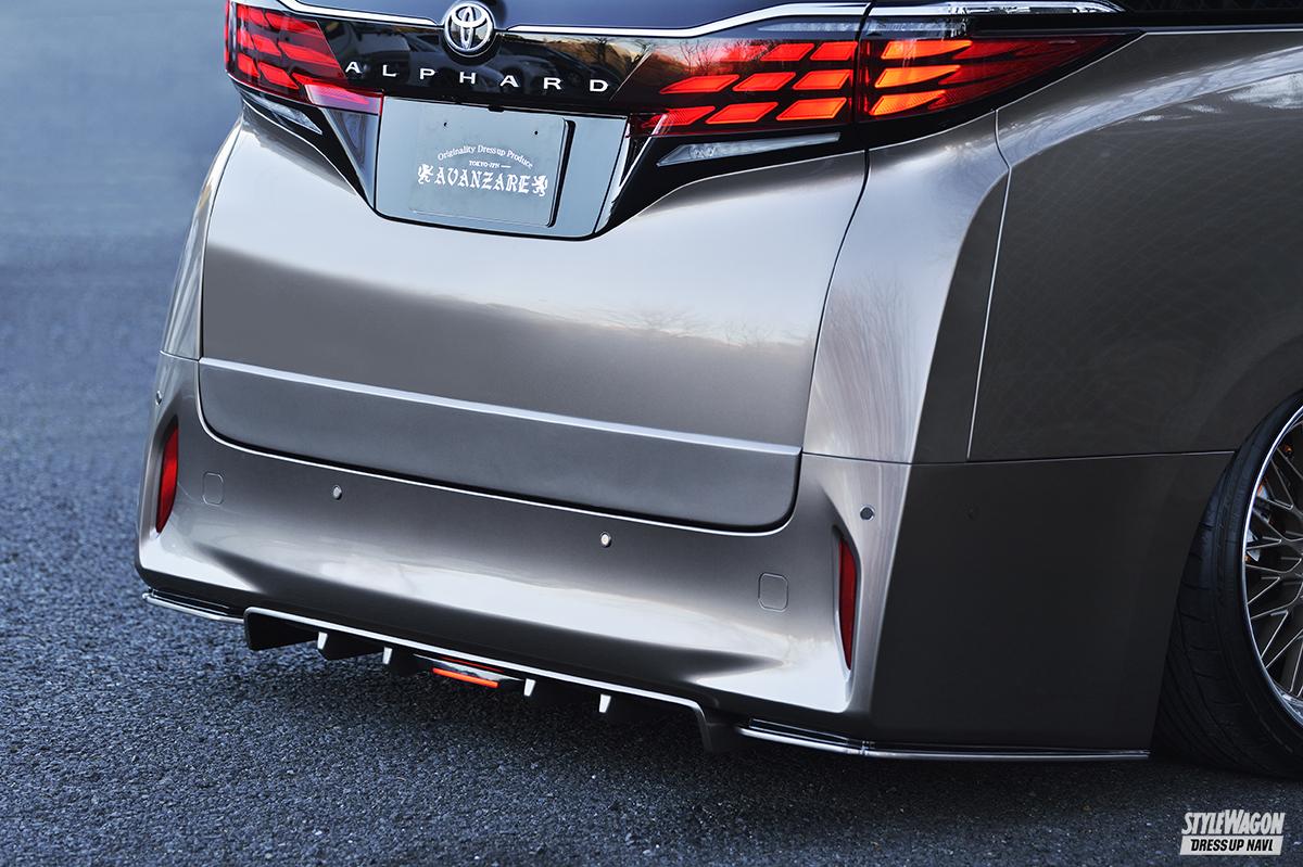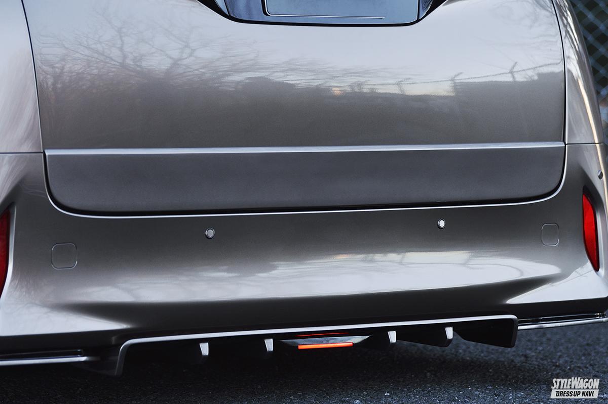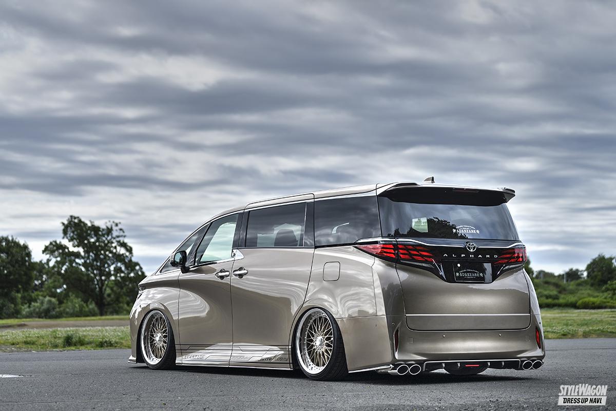 20&30系と、長年アル&ヴェルカスタムにチカラを入れているアデッソが手掛けた40系エアロは、30系で好評を博した薄型フラップ系の流れを汲んだシンプル路線で登場だ。フロントはフラップ、リアは2つの別パーツという構成も、30系の流れを色濃く意識させる。アルファードが持つ重厚感や威厳といった個性を犠牲にせず、的確に存在感を高める手腕は手慣れたものだ。純正バンパーラインに沿ってエアロを美しくはわせるなど、派手に変わりすぎることを嫌う大人のユーザーにもオススメしたい。