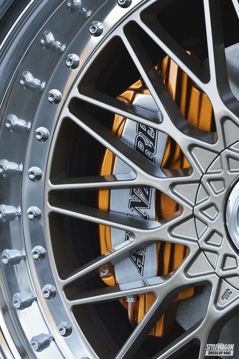 アデッソのカスタムといえば、〝低い状態で美しく走る〟ことが1つのポイントといえるが、それは今作でも変わらず。エアロの張り出しや、路面への下がり具合を細部まで入念に計算と、エアロビギナーでも走れる実用性も鑑みてデザインしている。
