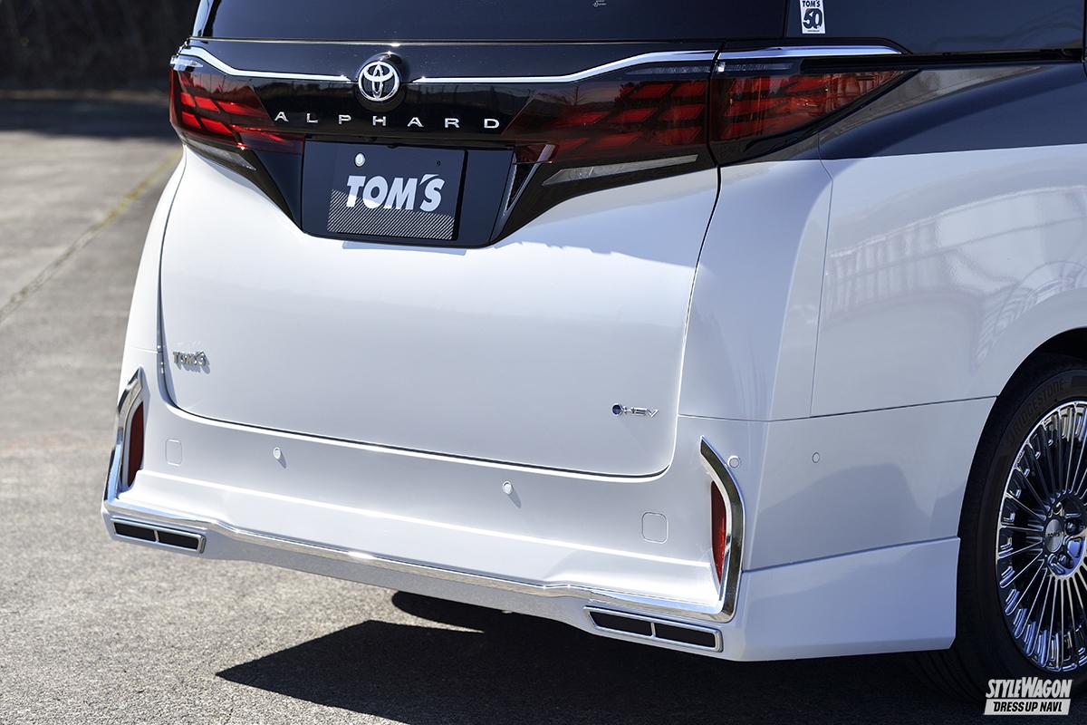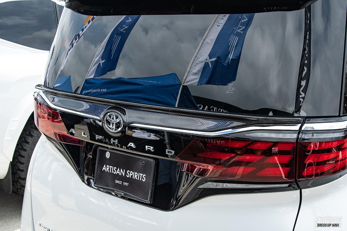 ・厚さ15mmの薄型フラップスタイル ・リアのフローティングディフューザーは枚数を選択できる ・フォグカバーガーニッシュはアルファードだけの専用装備