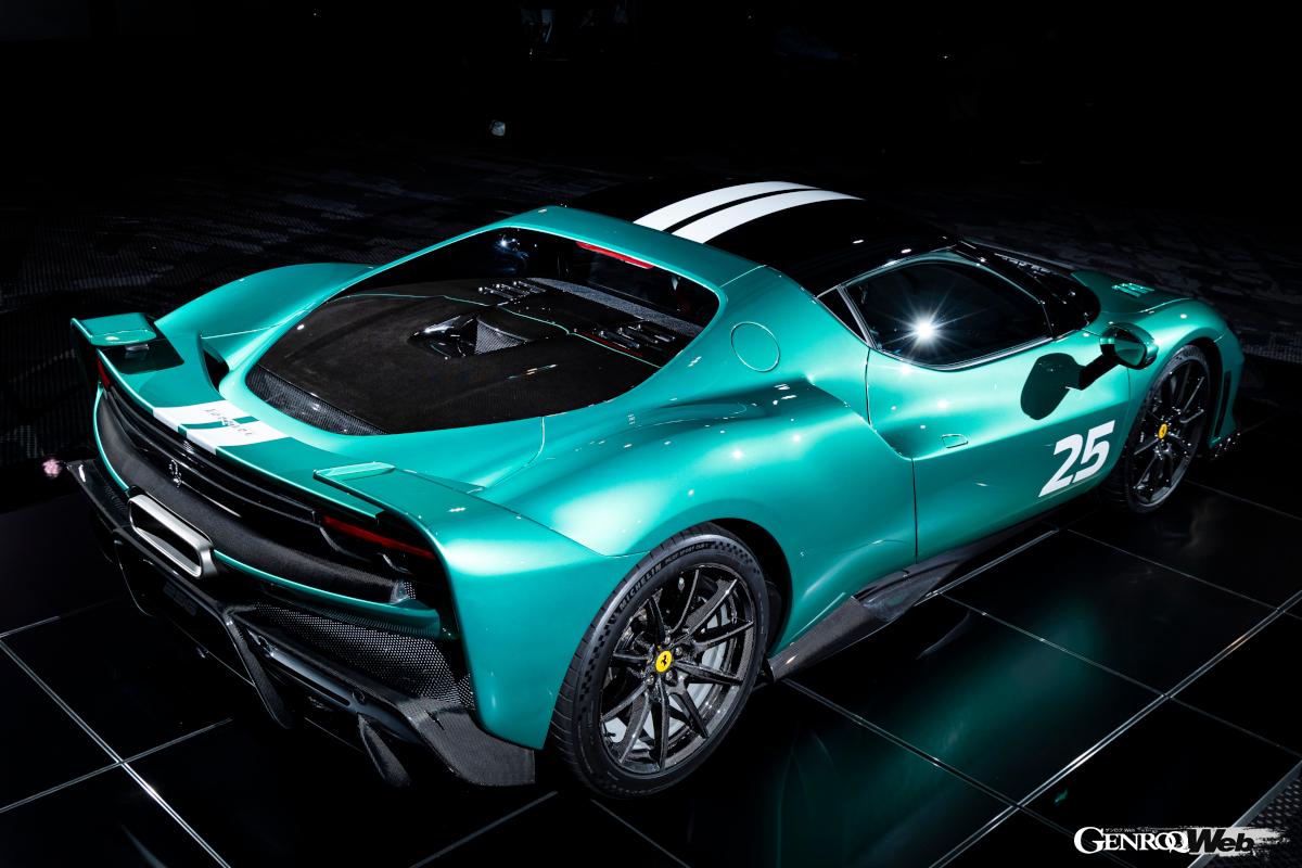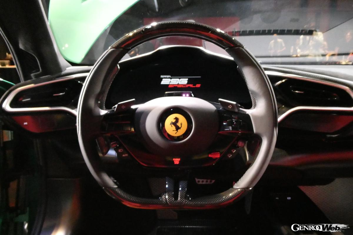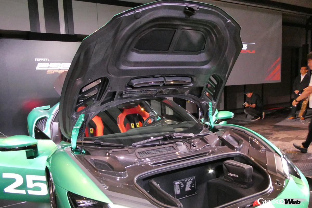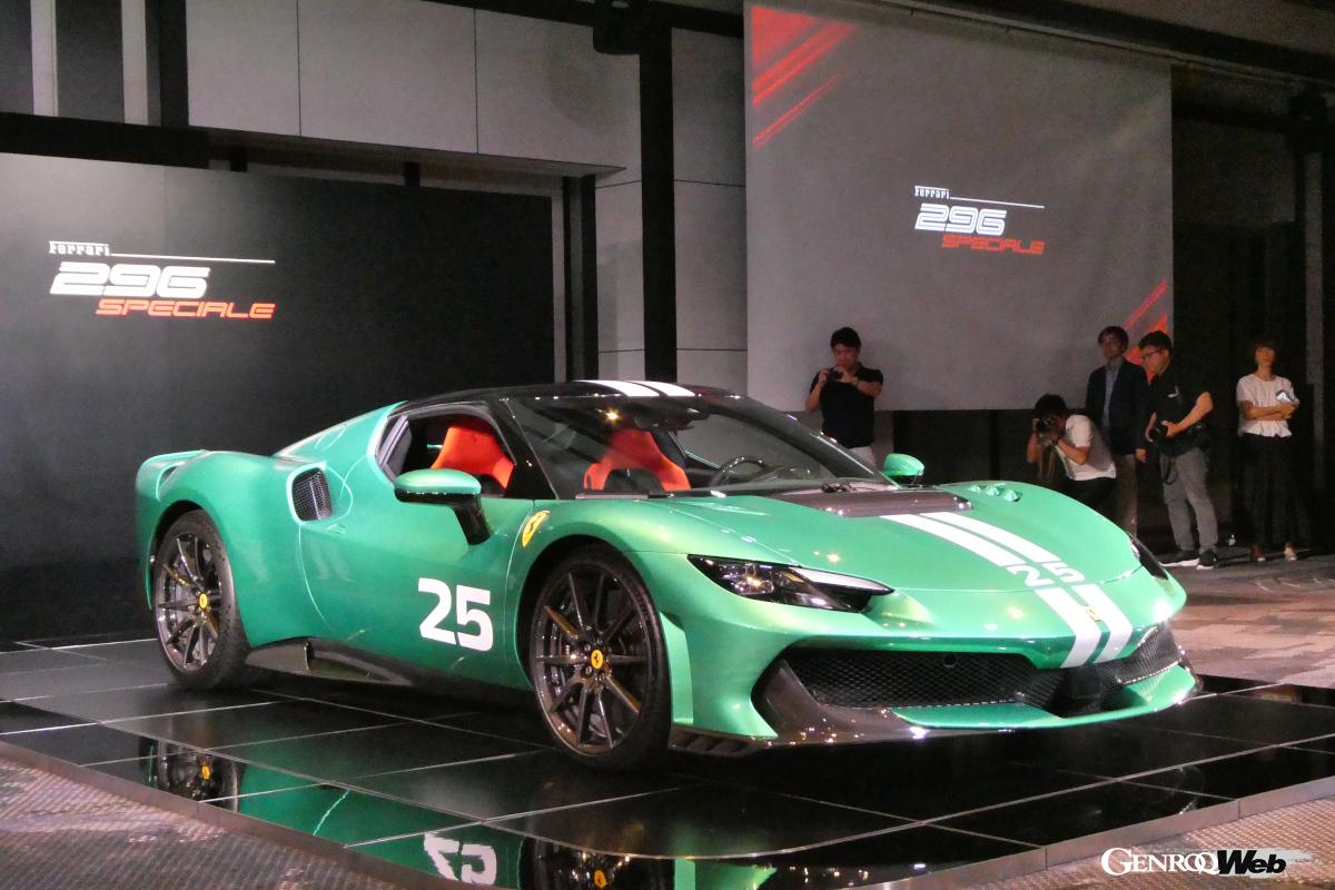 プレスリリース 後輪駆動最強フェラーリ「296 スペチアーレ」が日本初披露「デリバリーは2026年春から」【写真・8枚目】 「フェラーリ 296 GTB」のハイパフォーマンス仕様「296 スペチアーレ」。 マラネッロ本社から来日したヘッド オブ プロダクト マーケティングのエマヌエレ・カランド氏(右)とフェラーリ・ジャパンのドナート・ロマニエッロ代表取締役社長。 この画像の記事を読む